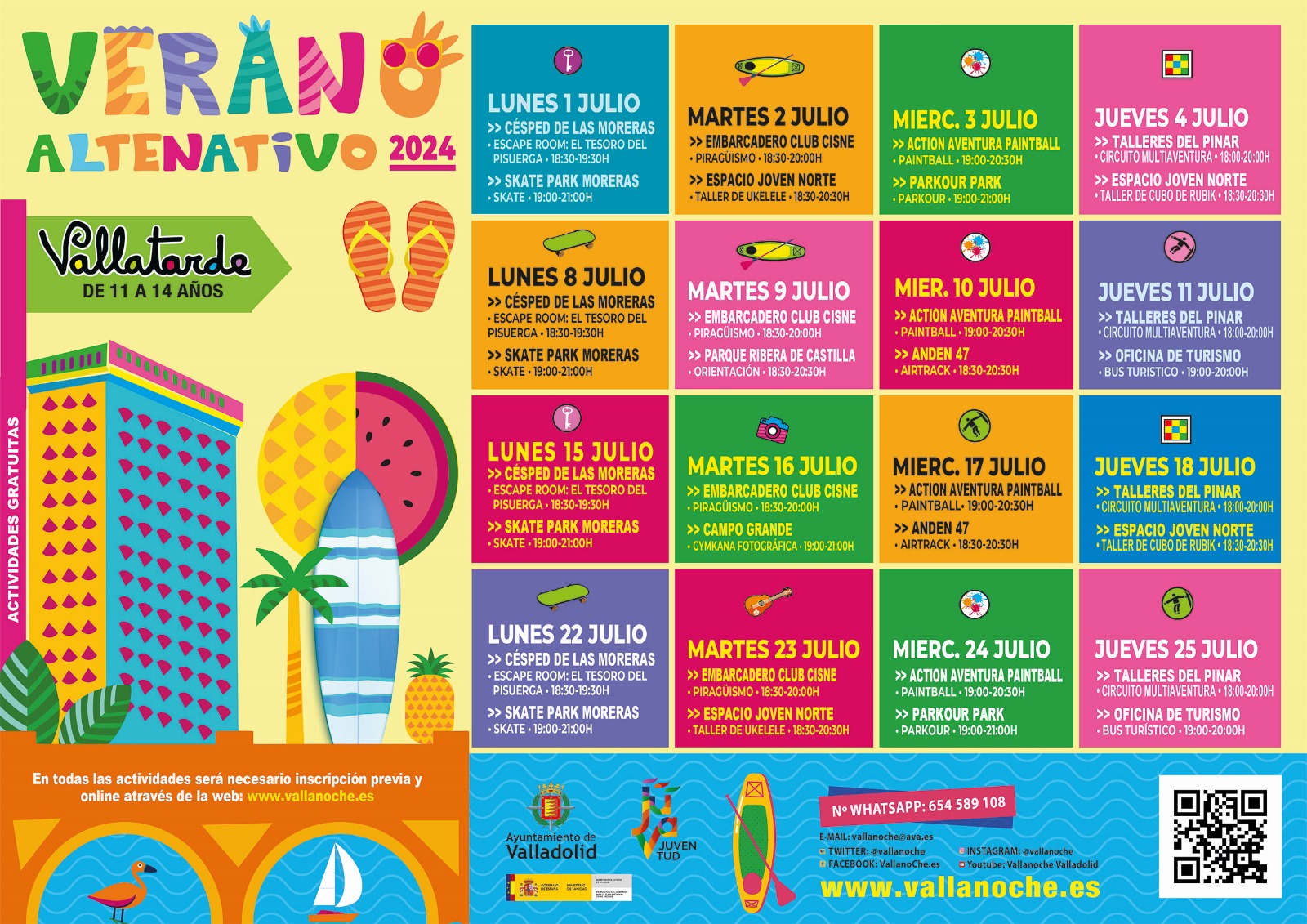 . Las plazas son limitadas.La concejala de Juventud, Carolina del Bosque, ha presentado hoy en la Casa Consistorial la edición de verano del programa de ocio alternativo Vallatarde (de 11 a 14 años) & Vallanoche (de 14 a 30 años) del Ayuntamiento de Valladolid, que se pondrá en marcha el próximo lunes, 1 de julio, y se desarrollará durante todo el mes estival, de lunes a jueves, de forma gratuita.