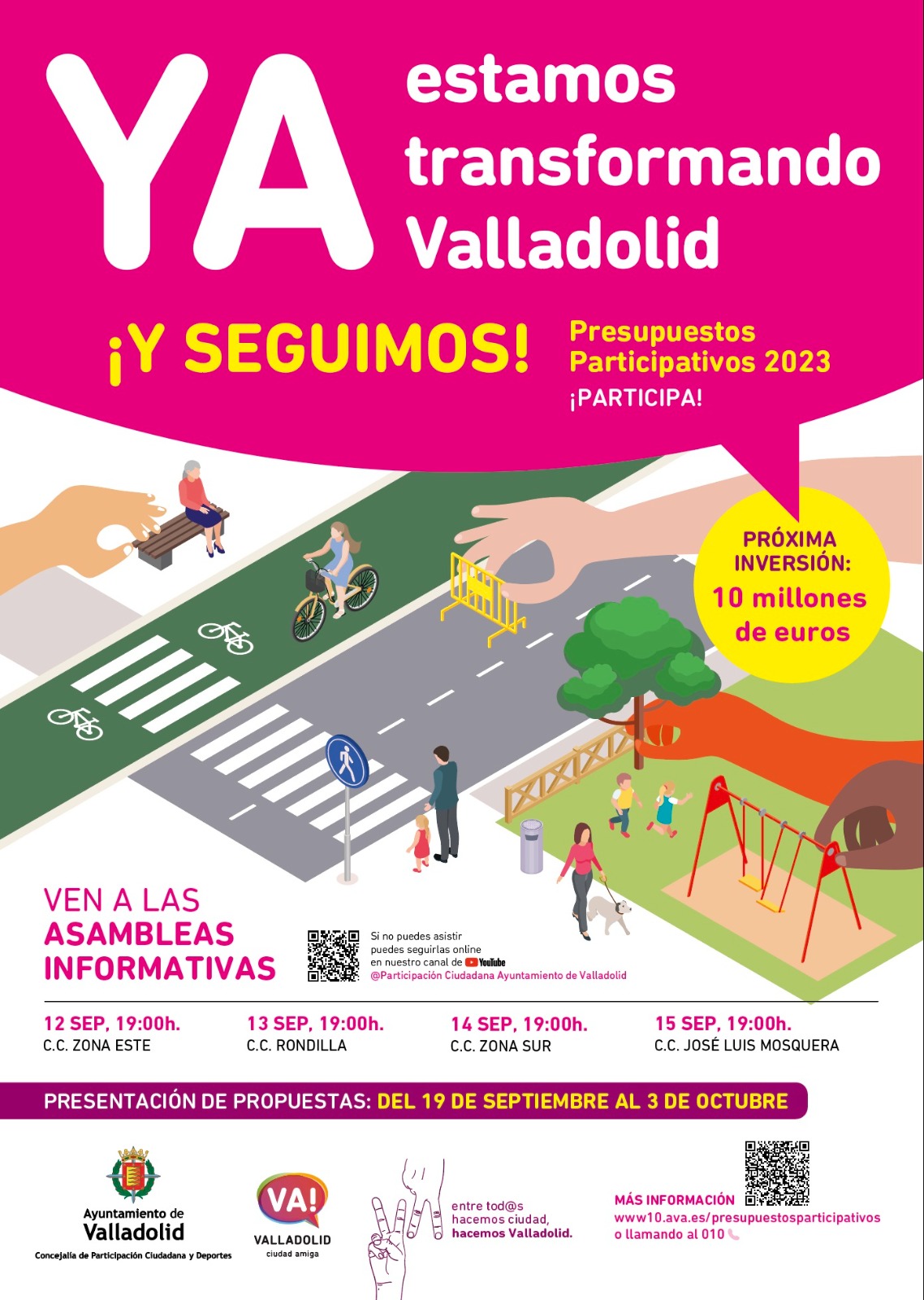 Son una iniciativa del Ayuntamiento de Valladolid para que una parte del presupuesto municipal sea decidida directamente por los vecinos y vecinas de la ciudad. Los Presupuestos Participativos están regulados por un Reglamento aprobado por el Ayuntamiento de Valladolid en enero de 2018Quien tenga más de 16 años, puede participar con sus propuestas, apoyos y formando parte de las Mesas de Zona.