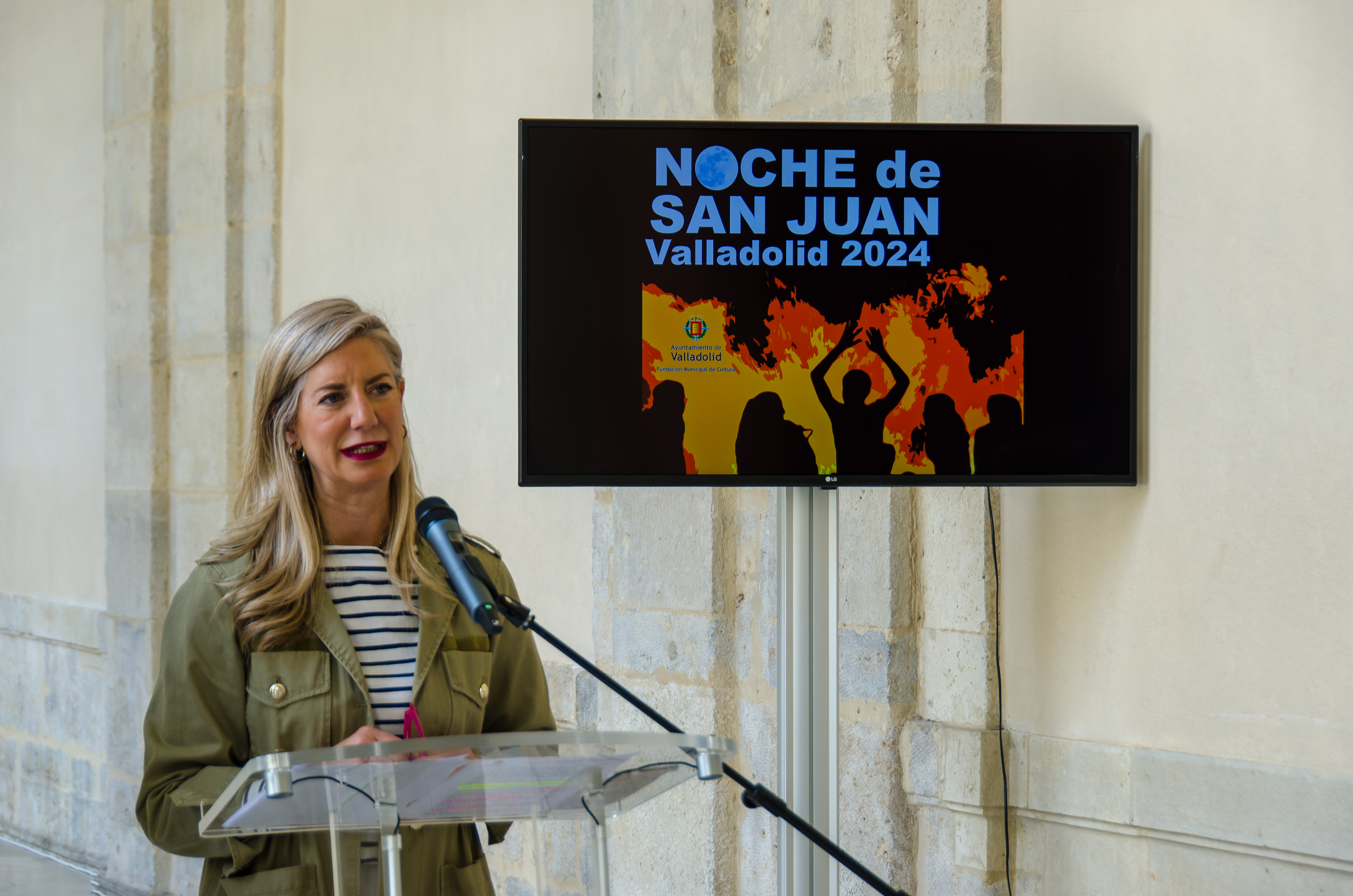 La concejala de Educación y Cultura, Irene Carvajal, acompañada por el gerente de Aquavall, Pedro Arroyo, ha presentado esta mañana en el Museo Patio Herreriano el programa de actividades que se desarrollarán en Valladolid con motivo de la Noche de San Juan 2024.