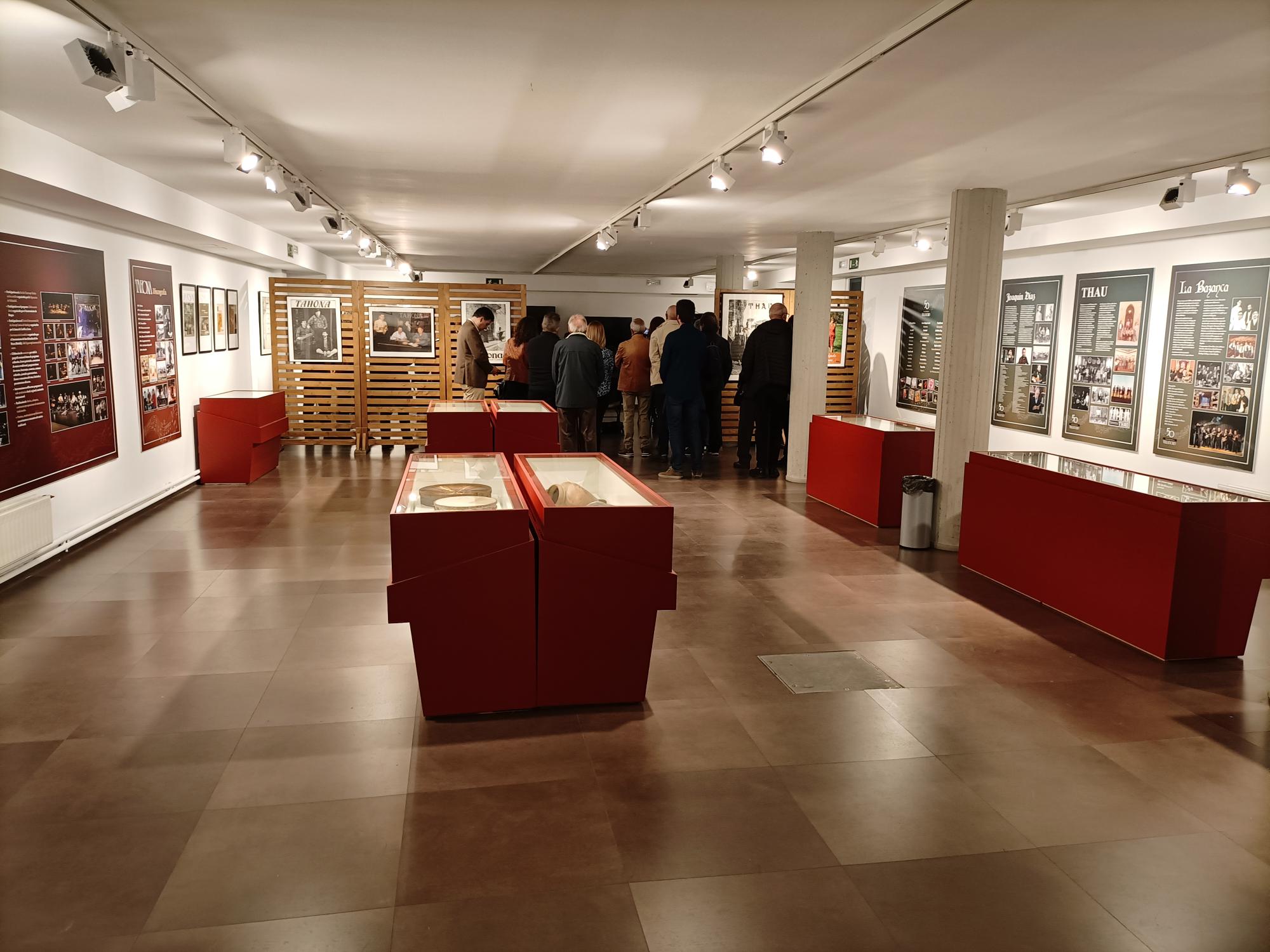 La muestra rememora los cincuenta años de trayectoria de Tahona, con fotografías, instrumentos musicales junto con un audiovisual.