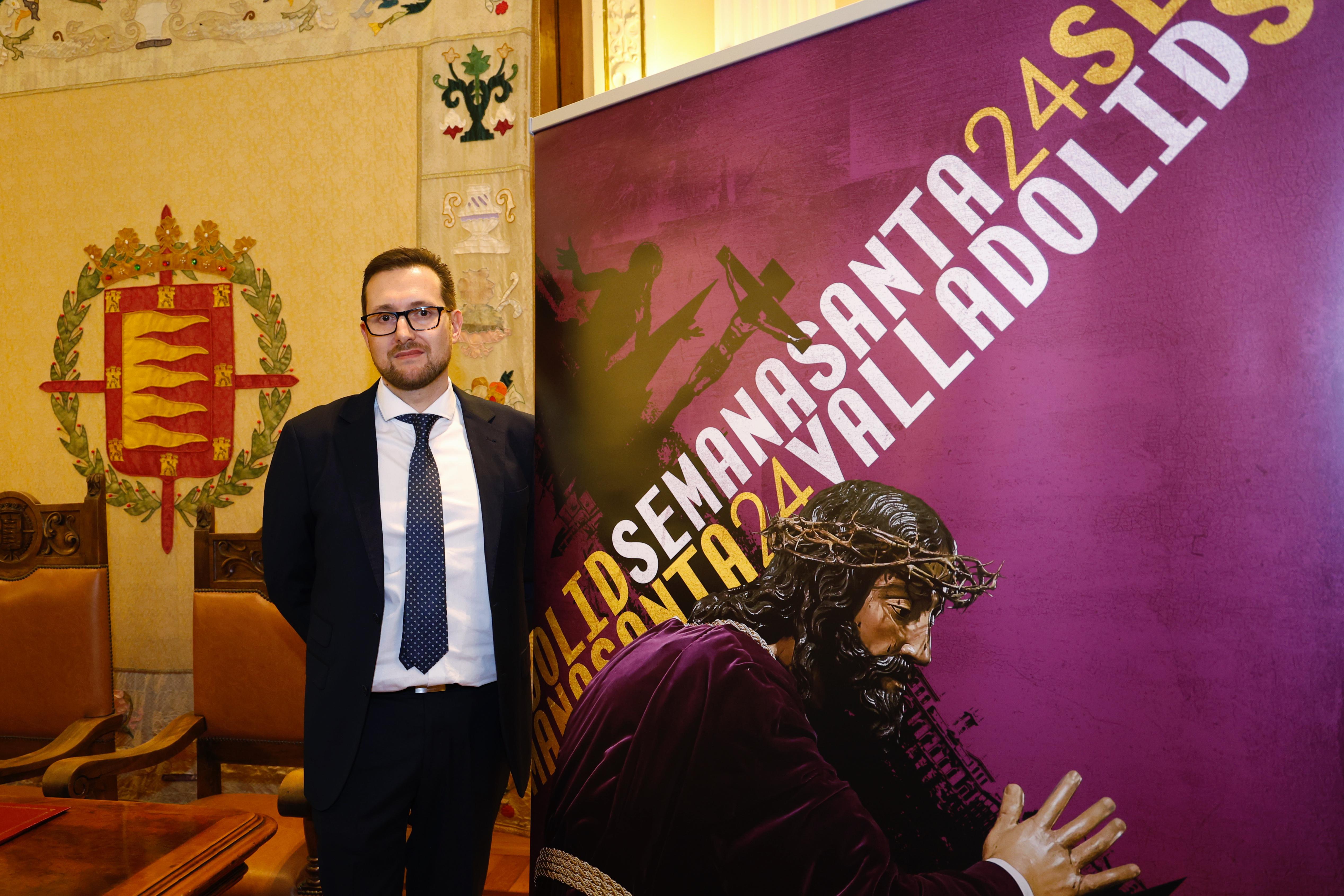El alcalde, Jesús Julio Carnero, y el presidente de la Junta de Cofradías de Semana Santa de Valladolid, Miguel Vegas, acompañados por el arzobispo de Valladolid, D. Luis Argüello, han presentado en el Salón de Recepciones del Ayuntamiento el cartel anunciador de la Semana Santa vallisoletana, que ilustrará una imagen de Jesús con la Cruz a Cuestas, obra de Gregorio Fernández, captada por la cámara de José Raúl Martín Pérez, uno de los fotógrafos oficiales de la Semana Santa de Valladolid, durante la procesión de la Oración y Sacrificio del Jueves Santo celebrada el pasado año, en la que procesiona desde el año 2014.