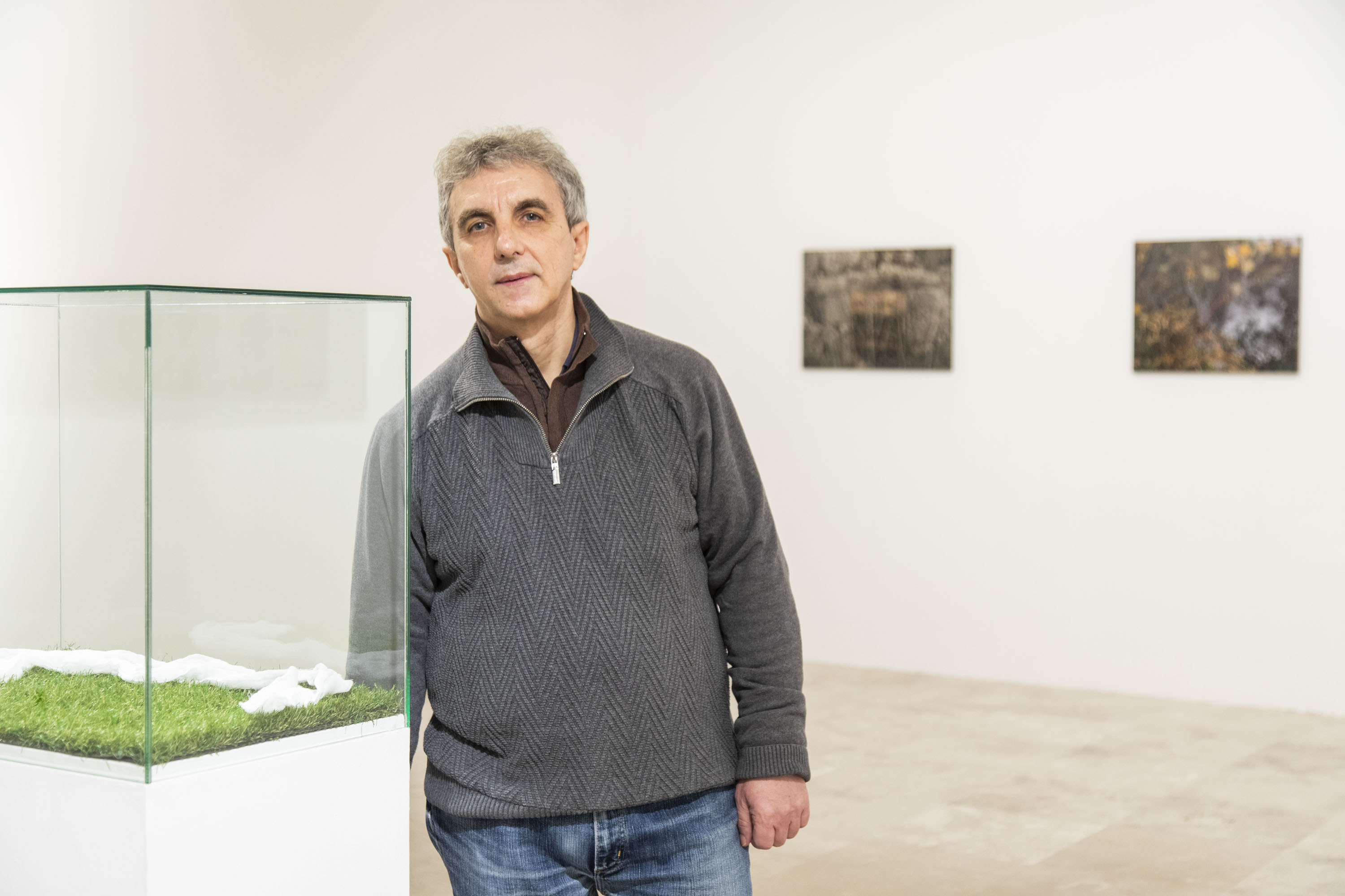 "Stalker In The Land" se centra en una interpretación personal y creativa, un trasvase de imágenes e ideas a un medio distinto, de la obra de Andrei Tarkovski. Las imágenes con diferentes soportes, aluminio, madera, textil, papel y otros elementos, se estructura en tres partes con una vocación de lectura conjunta.