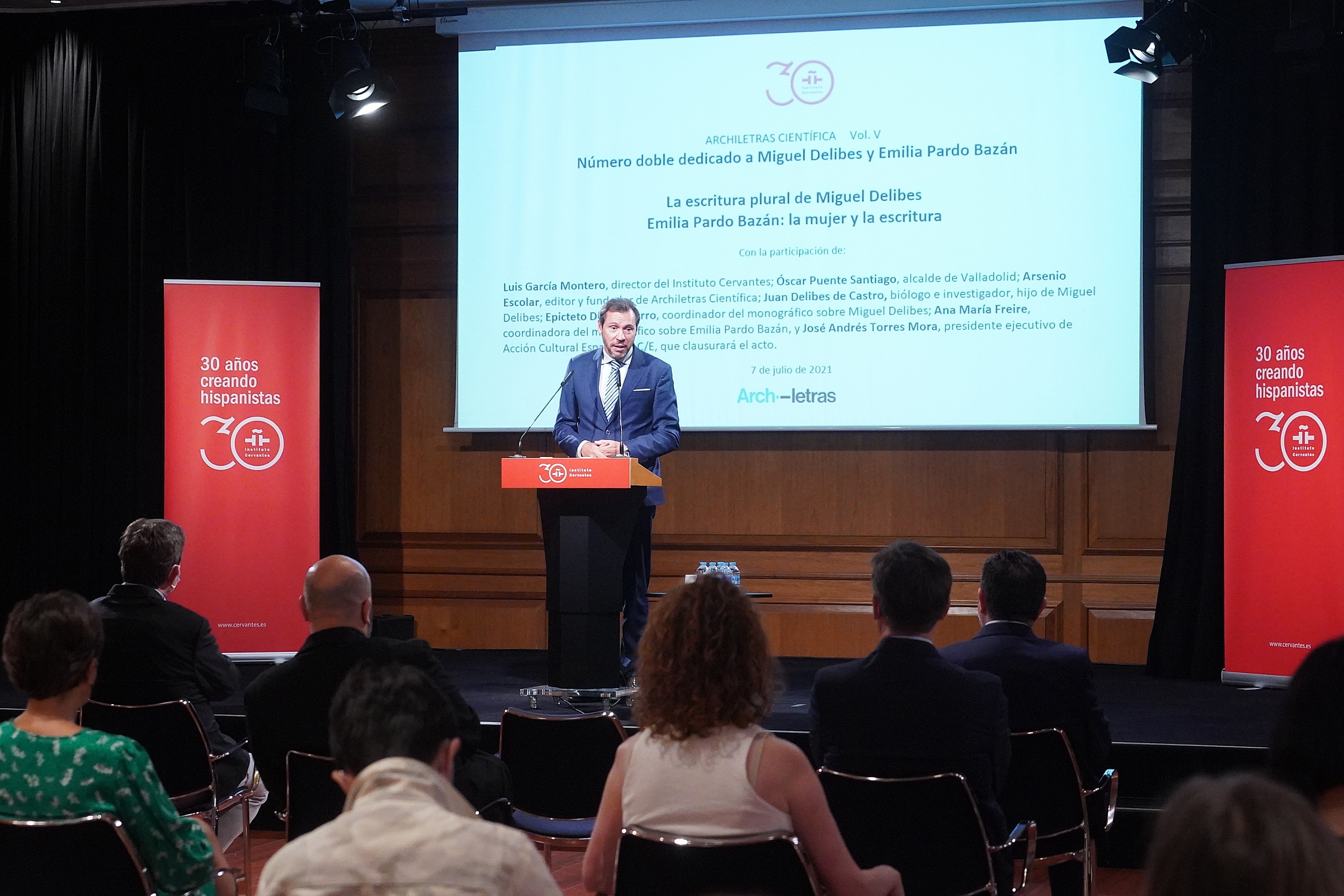 En el acto han participado Luis García Montero, director del Instituto Cervantes; Óscar Puente, alcalde de Valladolid; Arsenio Escolar, fundador del Proyecto Archiletras; Ángel Gómez Moreno, director de Archiletras Científica; los coordinadores de los volúmenes, Díaz Navarro y Freire López, y Juan Delibes, hijo de Miguel Delibes y representante de la Fundación, y José Andrés Torres Mora, presidente de Acción Cultural Española.