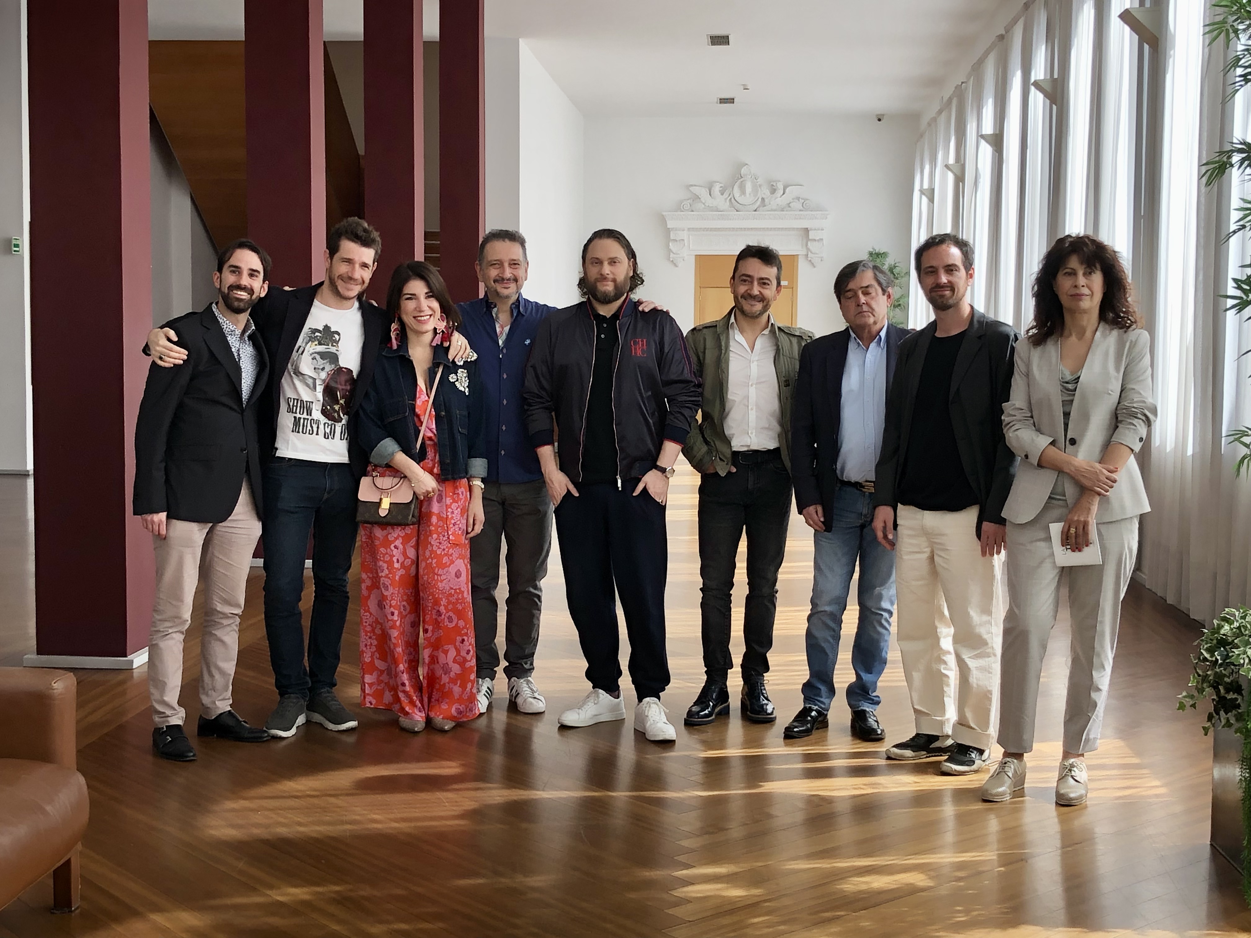 Acompañados por el director musical Andrés Salado, el director de escena Leo Castaldi, los cantantes Claudia Pavone, Airam Hernández y Javier Franco, han asistido también el gerente de la OSCyL, Jesús María Herrera y el director del Coro Calderón Lírico, Sergio Domínguez.