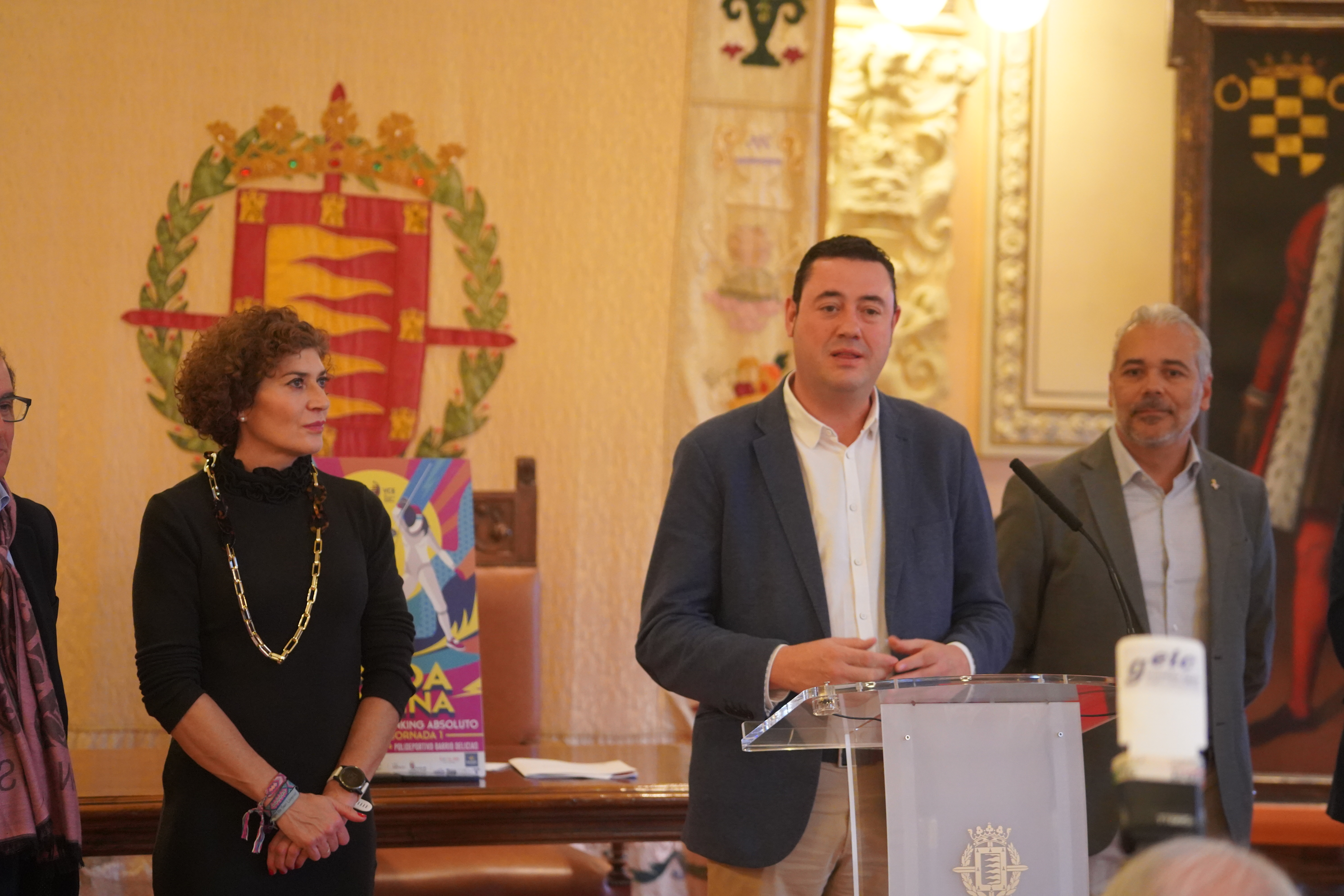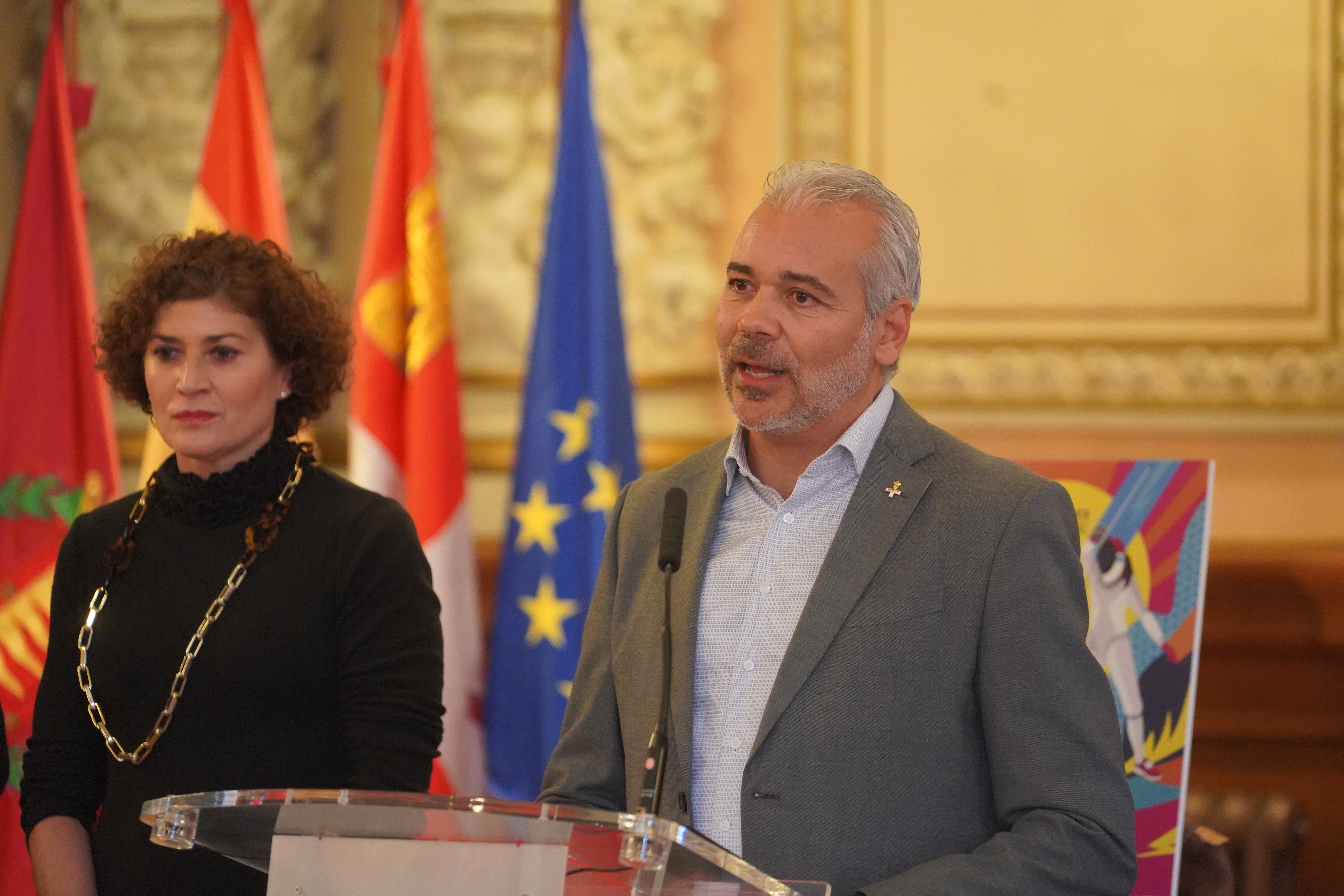 La concejala de Participación Ciudadana y Deportes, Mayte Martínez, acompañada por el presidente de la Federación de Esgrima de Castilla y León, Daniel Bravo, y el presidente del Valladolid Club de Esgrima VCE, Rubén Álvarez, ha presentado hoy en el Salón de Recepciones del Ayuntamiento el X Torneo Nacional de Espada Femenina, que se celebrará en el Polideportivo Barrio Delicias de Valladolid el próximo fin de semana, días 18 y 19 de noviembre. Al acto también han asistido el diputado de Deportes y Juventud, Javier González, y Narciso Prieto, director de Comunicación de Caja Rural de Zamora, patrocinador principal del evento.