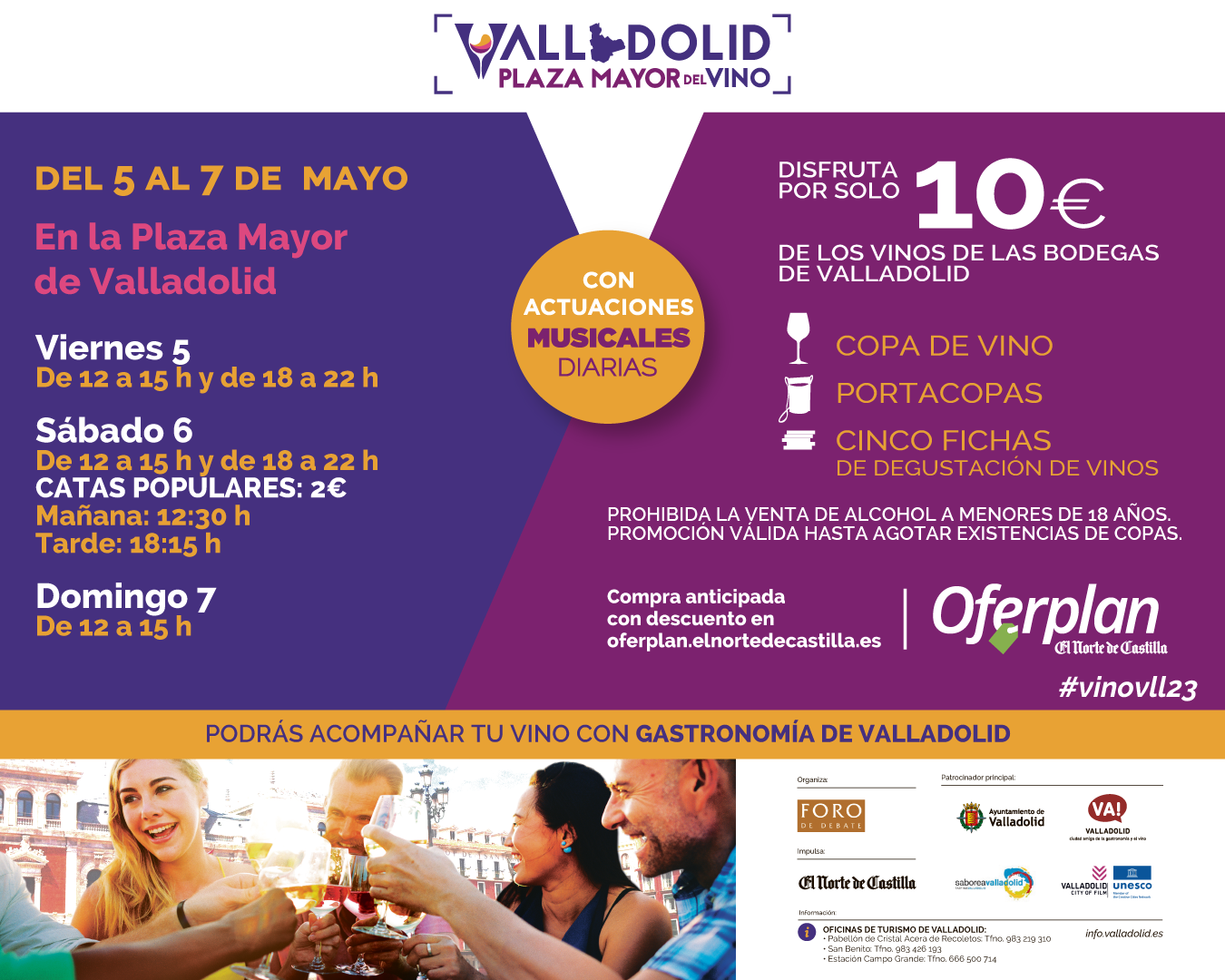 El acceso a Plaza Mayor del Vino es libre para todo el público, pero sólo se permitirá el consumo de vino a los mayores de 18 años.