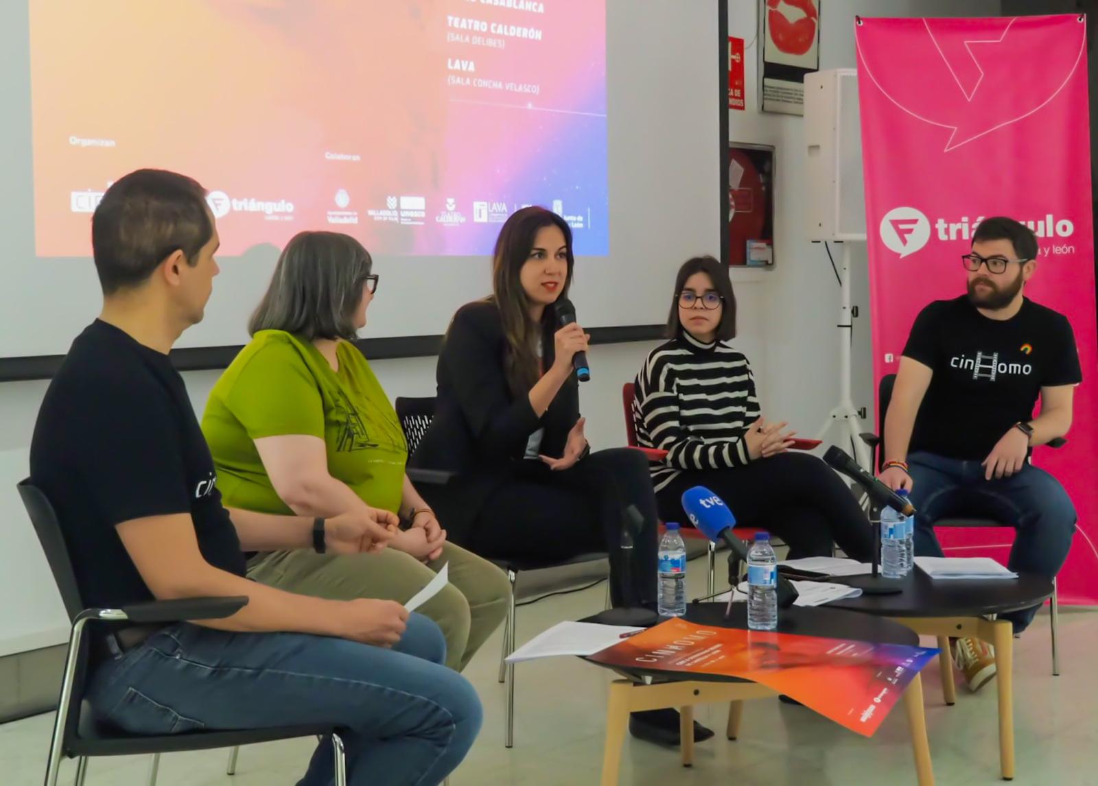 La concejala de Turismo, Eventos y Marca Ciudad, Blanca Jiménez, y la presidenta de la Fundación Triángulo Castilla y León, Yolanda Rodríguez, han presentado en el ‘Espacio Seminci’ del Teatro Calderón la 23º edición de la Muestra Internacional de Cine y Diversidad Sexual, CINHOMO, que se celebrará del 11 al 18 de abril en Valladolid. Han estado acompañadas por parte del equipo de voluntariado del festival, representado en Marta García, miembro del equipo de programación de largometrajes; Samuel Benito, del equipo de producción de cortometrajes, y David Lagunilla, del equipo de programación de documentales y cortometrajes.