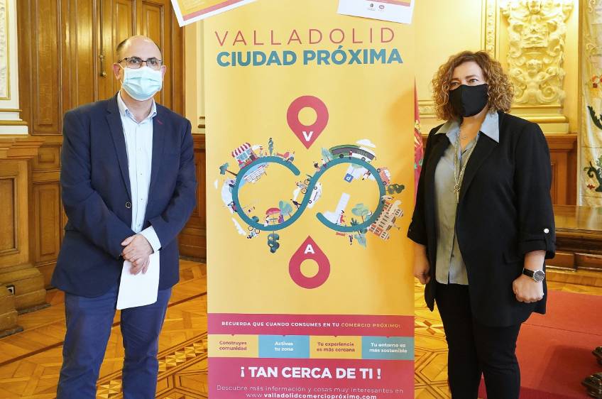 La concejala de Innovación, Desarrollo Económico, Empleo y Comercio, Charo Chávez, y el concejal de Movilidad y Espacio Urbano, Luis Vélez, han presentado hoy la campaña "Valladolid ciudad próxima" acompañados por representantes de Avadeco, Fecosva y la Cámara...