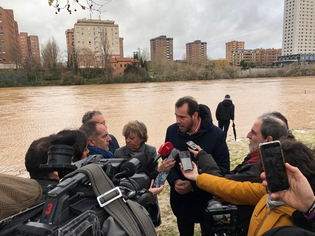Óscar Puente y Cristina Danés constatan la crecida del río en las Moreras