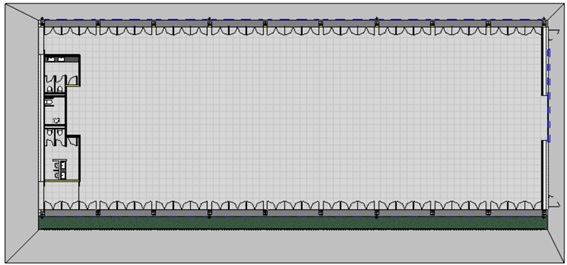 El acceso peatonal al inmueble se realizará por la fachada sur, mientras que en la fachada opuesta se habilitará un acceso para vehículos y dos salidas de emergencia. Las fachadas este y oeste dispondrán de ventanas corridas altas a lo largo de toda su longitud, incorporándose en la fachada este un sistema de protección solar mediante lamas verticales.