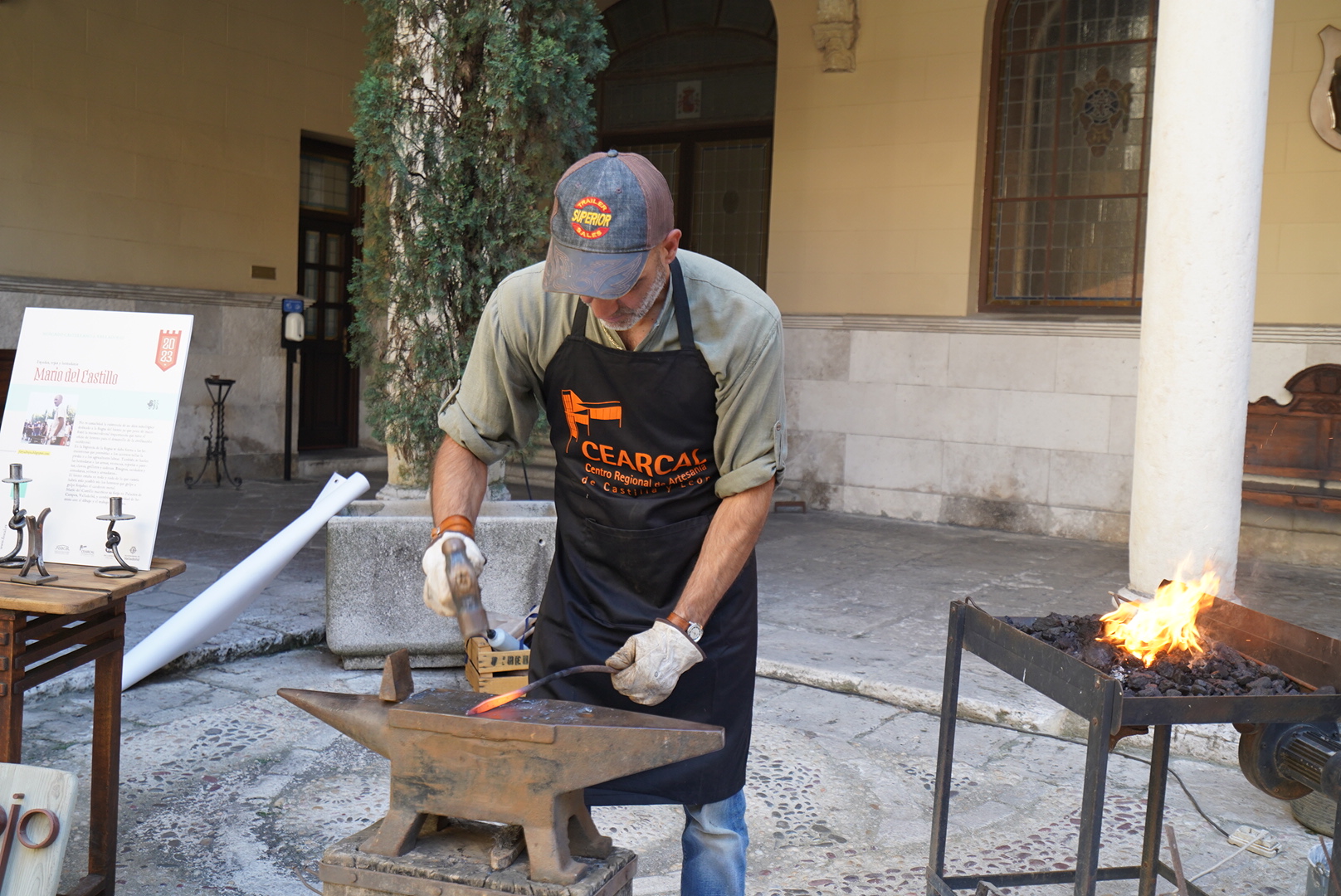 Alrededor del patio principal, los visitantes podrán sumergirse en "El espíritu de los imagineros" con Miguel Ángel Tapia; "La piedra de las catedrales y palacios" con Alberto García, "La imagen de la realidad" con Eduardo Alonso, "Tramas y urdimbres" Idem de lienzo, "Todo en un cesto" con Jana Úbeda, "La construcción de la luz" María Alameda, "El primero de los oficios" Juan Laguna, "Tierra de merinas" con Marta Valdivieso, "Sonidos de palacio" Antonio Pisa y "Espadas, rejas y herraduras" con Mario del Castillo.