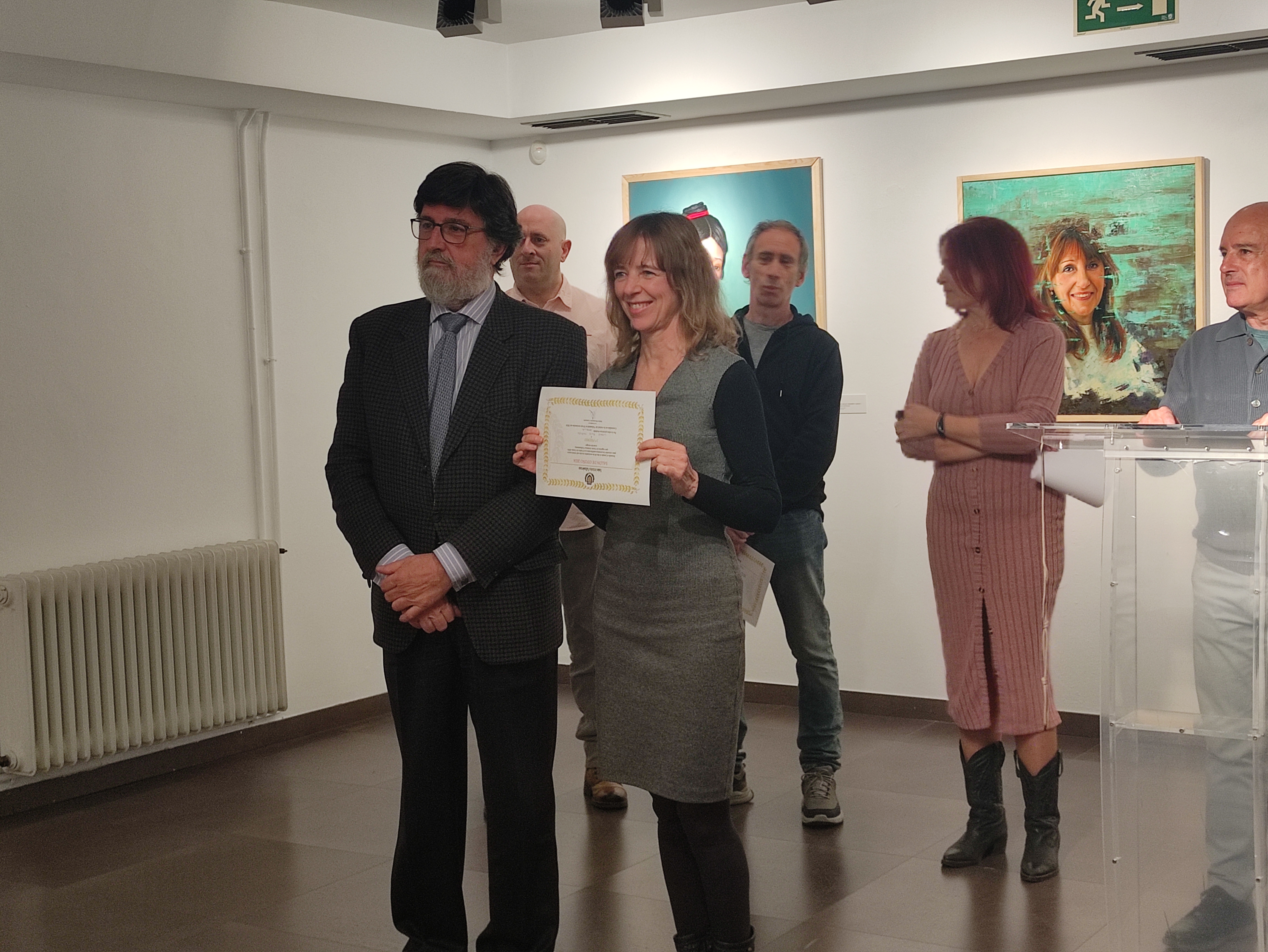 Durante la inauguración, además, ha tenido lugar la entrega de galardones de este concurso. El primer premio, con una dotación de 500 euros, ha sido para Liane Ruiz por Amelia. Se trata de un retrato figurativo sobre un fondo expresionista abstracto, elementos "que se encuentran en constante diálogo", explica la autora. "Quería retratar a alguien con mucho significado para mí", comenta sobre la protagonista del cuadro, familiar suya, "y el resultado es este: Amelia interaccionando de forma constante con sus circunstancias".