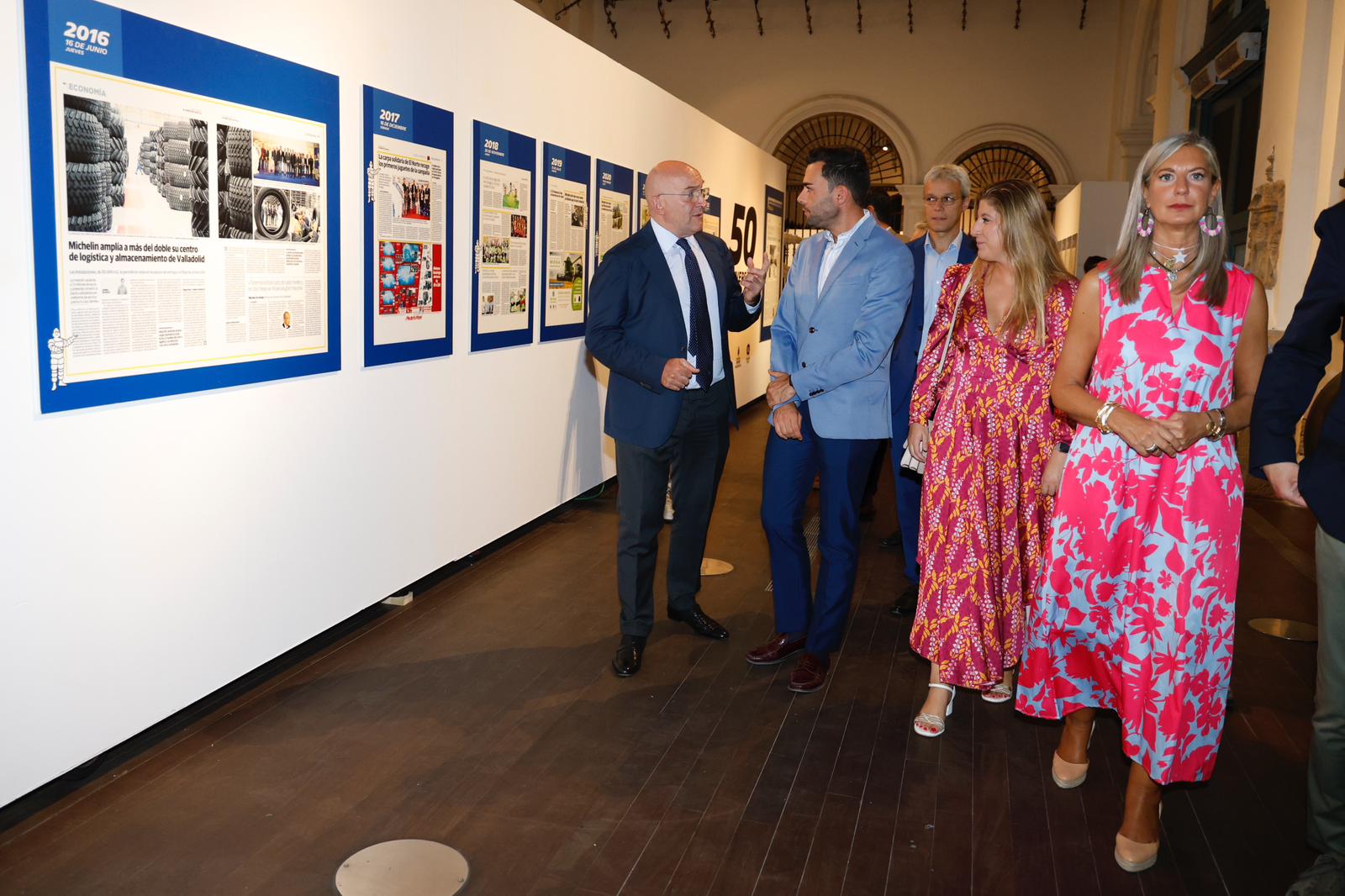 El alcalde de Valladolid, Jesús Julio Carnero; la concejala de Educación y Cultura, Irene Carvajal; el director de la fábrica de Michelin en la ciudad, Bruno Arias; el director de Relaciones Externas de Castilla y León, Julián Picapiedra, y el profesor titular de Historia Contemporánea de la Universidad de Valladolid y colaborador de El Norte de Castilla, Enrique Berzal, han inaugurado esta tarde la exposición. Organizada por la FMC y Michelin con la colaboración de El Norte de Castilla, podrá verse hasta el próximo 1 de octubre.