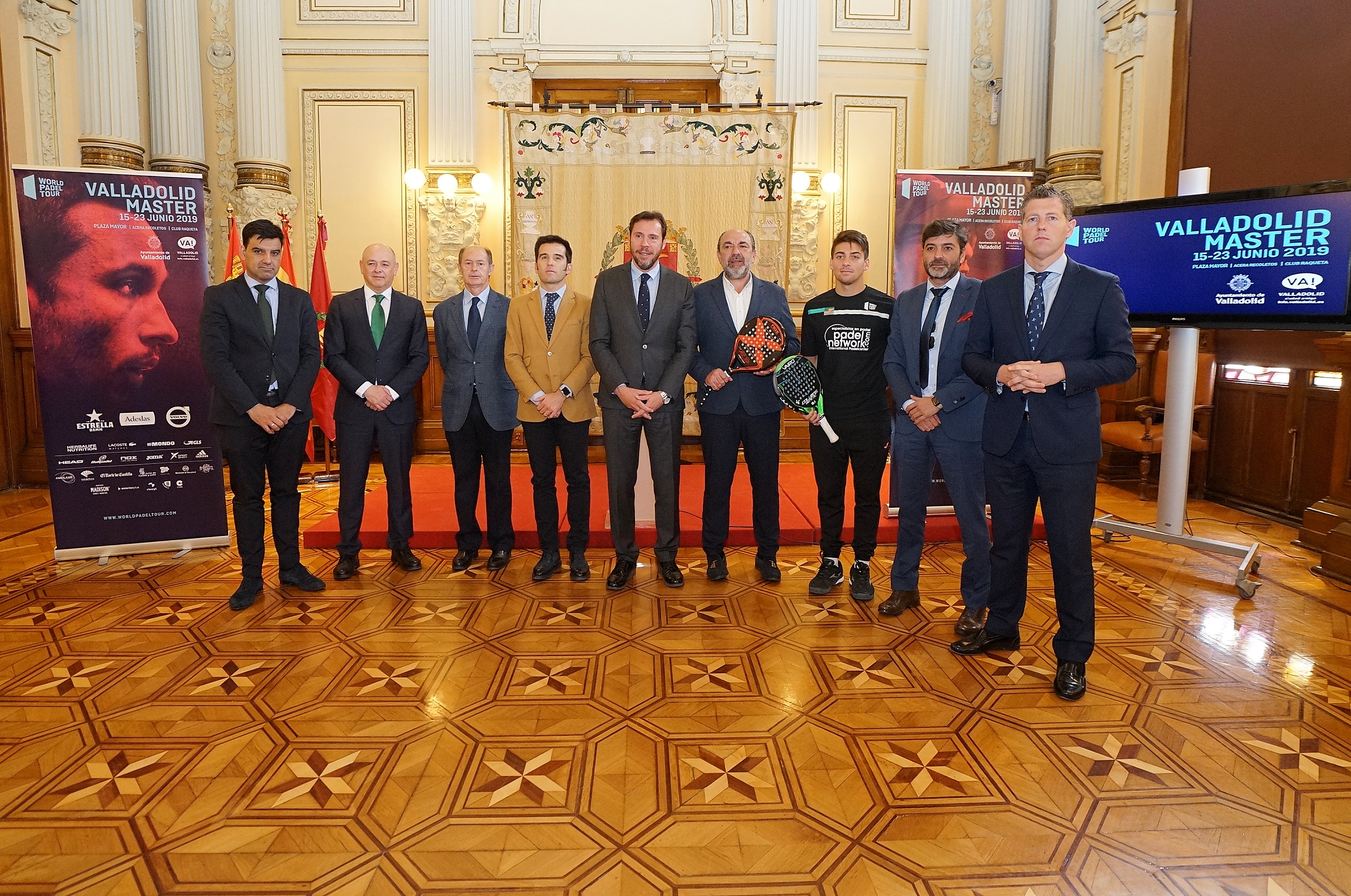 Óscar Puente, alcalde de Valladolid, ha presidido esta mañana la presentación oficial del Valladolid Máster, en la que también han estado presentes el director general de Deportes de la Junta, Alfonso Lahuerta; Luis Torres, director de Expansión nacional de World Padel Tour; y Luis García, director de Marketing de Madison; y el jugador profesional, Martín Di Nenno.