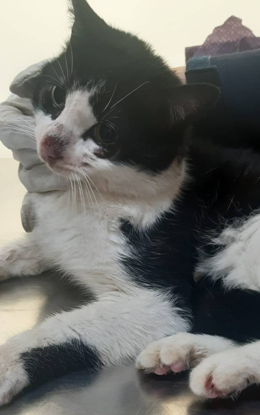 Recogido en residencia Riosol (polideportivo Pisuerga). No es sociable con humanos, pero se lleva bien con otros gatos.