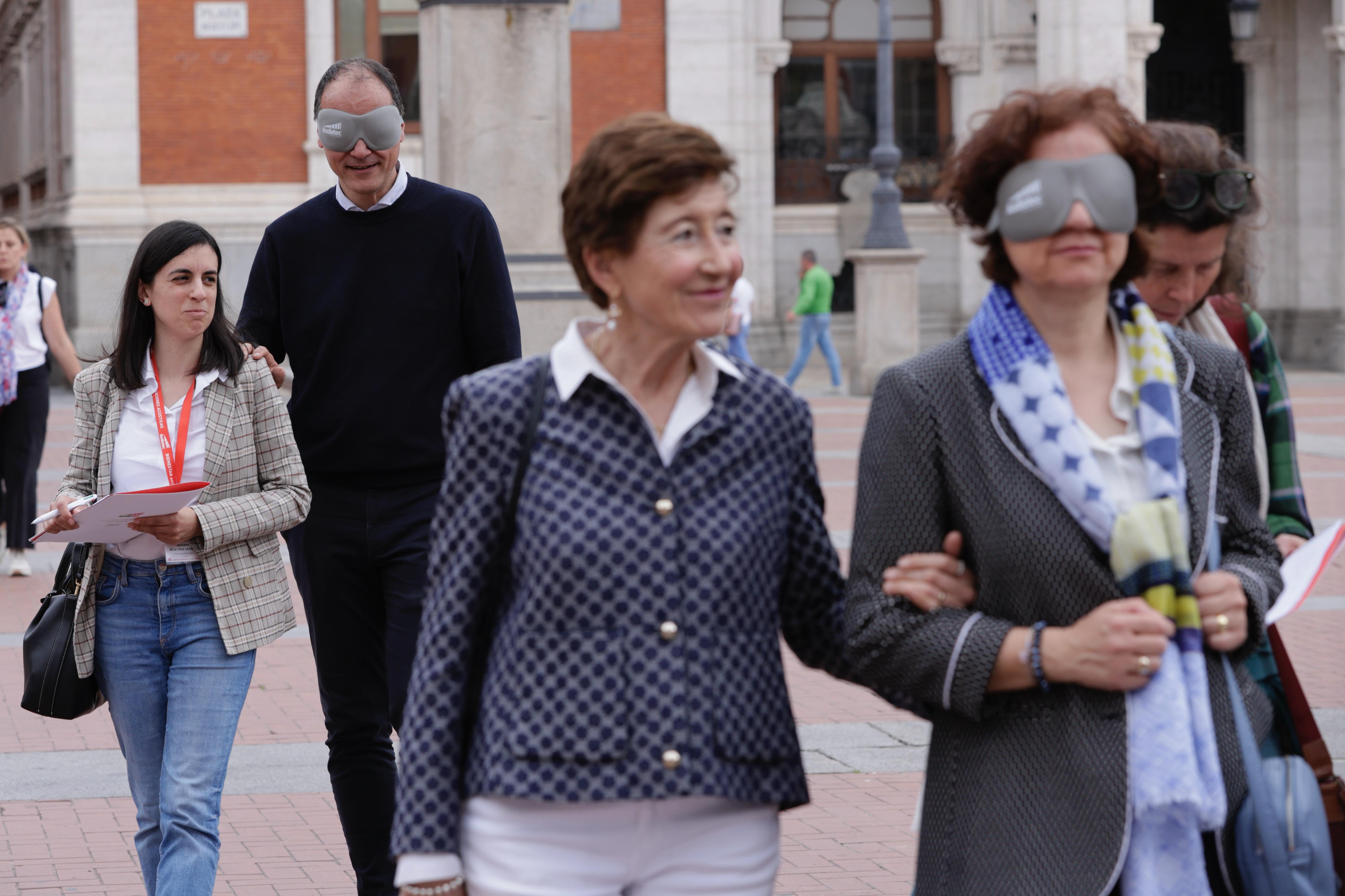 La actividad se ha realizado al objeto de concienciar del ruido presente en la cuidad, y los alumnos han tomado parte en grupos de 3: uno con los ojos tapados, otro de lazarillo y un tercero que ha ido anotando. El que iba con los ojos cerrados ha ido describiendo lo que oía. Han realizado tres paradas: C/ Santiago, Plaza de Zorrilla y Campo Grande, para evaluar así tres emplazamientos distintos.