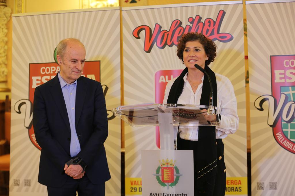 La concejala de Participación Ciudadana y Deportes, Mayte Martínez, y el presidente de la Federación Española de Voleibol, Agustín Martín, han presentado hoy en el Salón de Recepciones del Ayuntamiento la Copa de España de Voleibol junior, cadete y juvenil, que se celebrará en la ciudad entre el 27 y el 30 de diciembre, con récord de participantes, 5.670, y de equipos, 405.