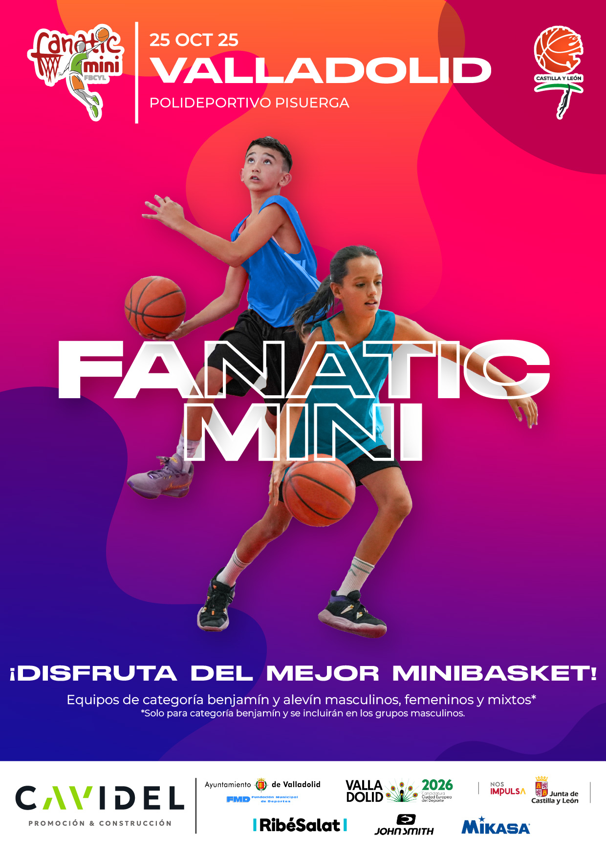 El Fanatic Mini se celebrará el sábado 25 de octubre en el Polideportivo Pisuerga, y está dirigido a equipos de categoría alevín de primer año (nacidos en 2015) y benjamín (nacidos en 2016 y 2017). Cada conjunto disputará dos partidos a lo largo de la jornada, en un ambiente lúdico y participativo.