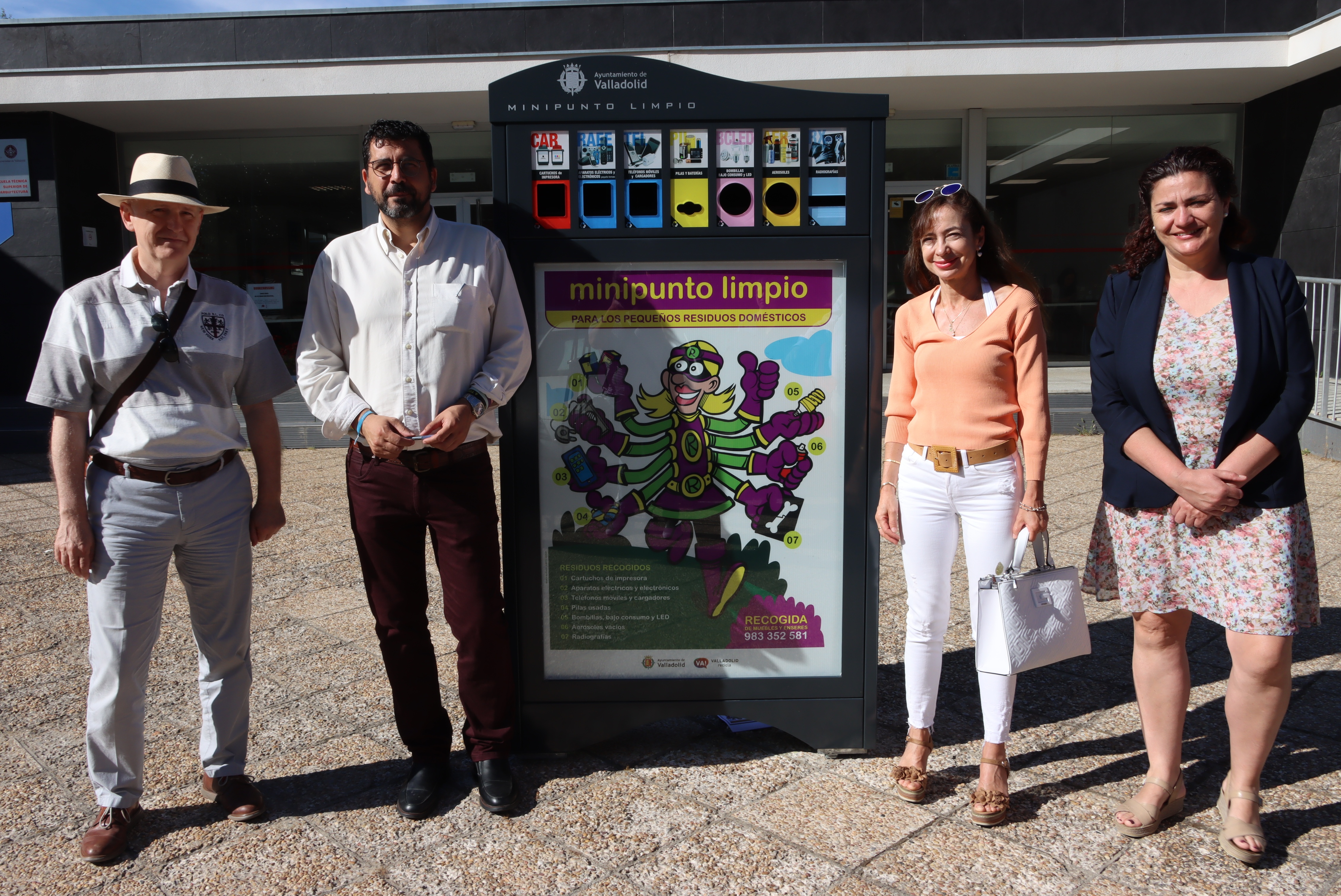 Los concejales Alberto Palomino y Alberto Bustos han presentado en Huerta del Rey esta pequeña infraestructura, que se suma a los cinco puntos limpios fijos y los dos móviles que recorren la ciudad. Se incluyen en el contrato que gestiona la empresa Socamex y la Concejalía de Salud Pública y Seguridad Ciudadana en coordinación con el área de Participación han elegido los centros cívicos por se los lugares más frecuentados por los vecinos.