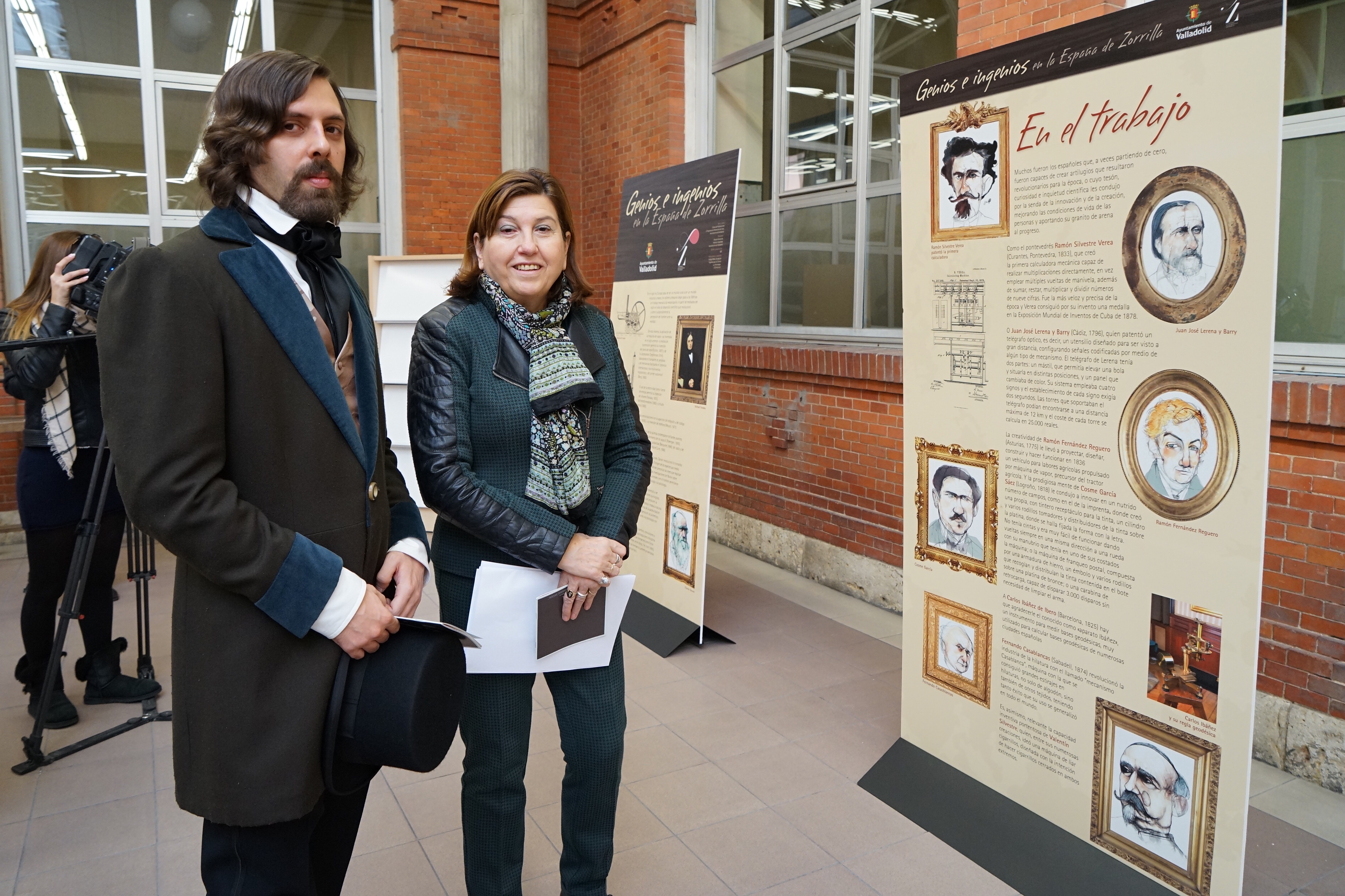 La concejala de Educación, Infancia e Igualdad, María Victoria Soto, acompañada por el director del I.E.S Zorrilla, Manuel Arias Condado, ha inaugurado esta mañana la exposición que lleva por nombre "Genio e ingenios de la España de Zorrilla" que se enmarca dentro de las actividades para conmemorar el bicentenario de José Zorrilla que se celebra este año.