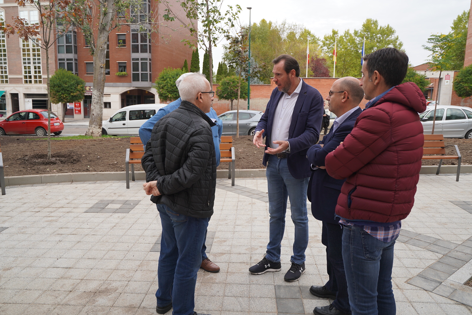 El alcalde de Valladolid, Oscar Puente, junto con el concejal de Movilidad y Espacio Urbano, Luis Vélez y la concejala de Medio Ambiente y Desarrollo Sostenible, María Sánchez, acompañados de técnicos municipales, han visitado las obras ejecutadas de reurbanización de la Plaza de San Nicolás.