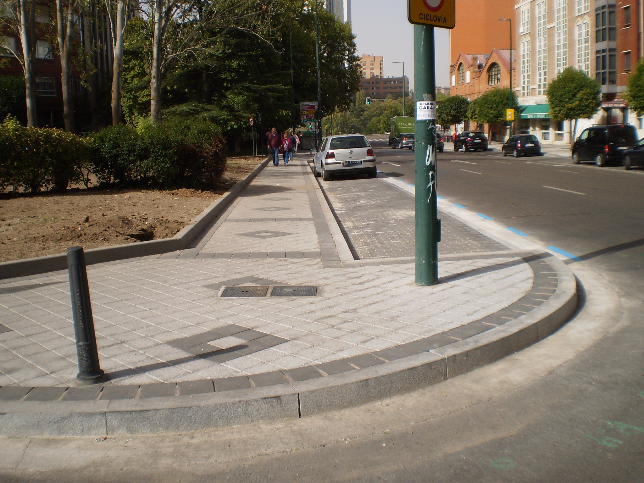 Todas estas nuevas pavimentaciones se han realizado con losas de árido granítico y acabado granallado, en continuidad con las del entorno, incorporando pavimento táctil en los rebajes para personas con movilidad reducida. El aparcamiento en línea contiguo a la calzada de la propia plaza se ha reconstruido con una anchura homogénea y pavimentado con adoquines de hormigón.