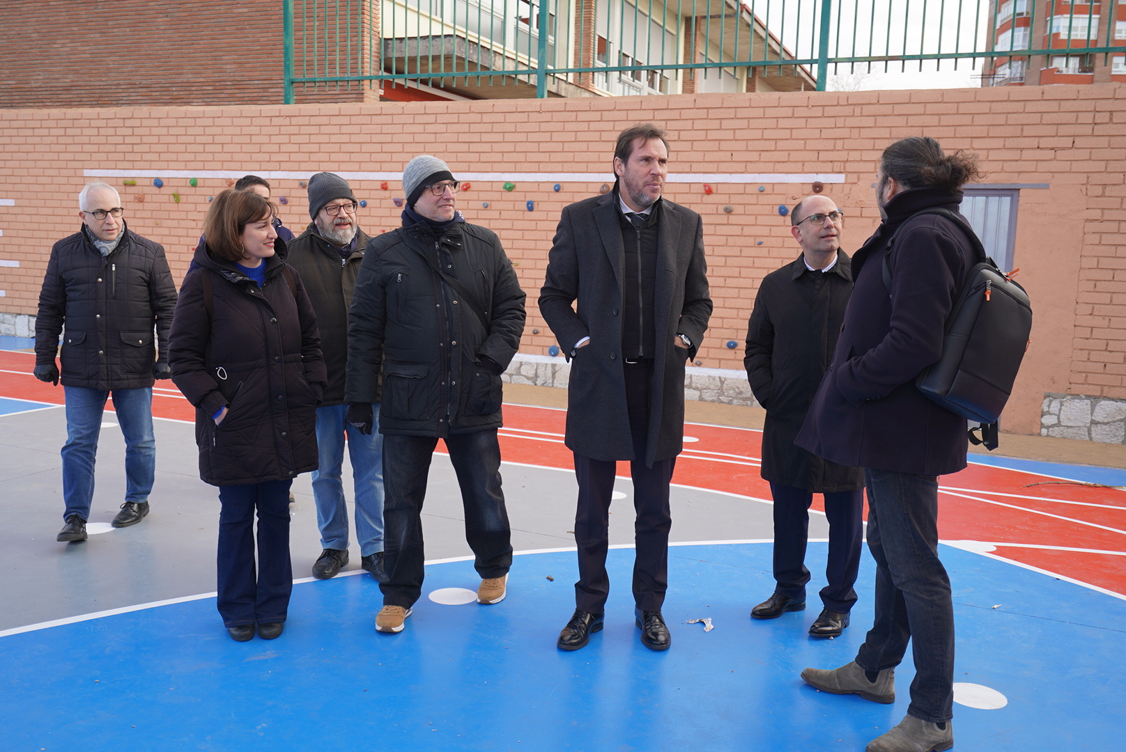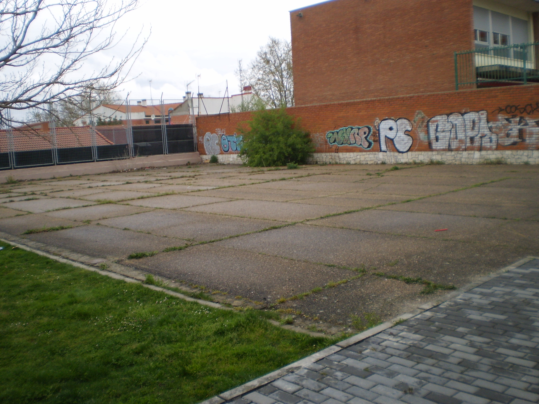 Como complemento, se han tratado y pintado los muros perimetrales, complementando dichos juegos con portería de futbol sala, diana, canasta de baloncesto, etc. Destaca especialmente un rocódromo de iniciación, formado por 118 presas de distintos tipos y altura máxima de 2 metros, con base de caucho para amortiguación de caídas. En el lateral abierto hacia la zona verde se ha instalado una mesa de ping pong y se ha construido un banco-grada de hormigón visto y madera.