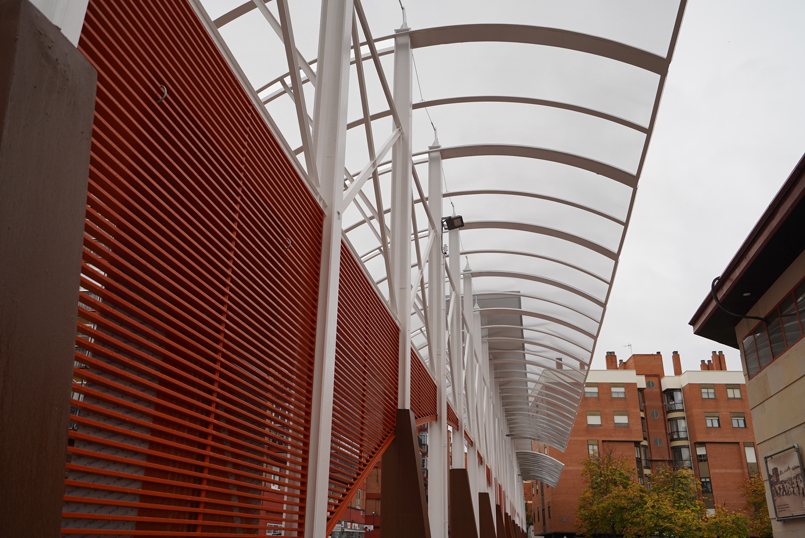 Con la actuación ejecutada en estos últimos meses, se ha optado por mantener la imagen de la intervención de los años noventa y reparar de una forma integral las marquesinas y bancos de la plaza, incluyendo la marquesina del lado norte cuyas piezas de madera también se encontraban degradadas, la renovación del alumbrado por otro más eficiente y la construcción de una rampa en el extremo sur de la plaza que permita atravesarla en diagonal mediante un itinerario peatonal accesible.