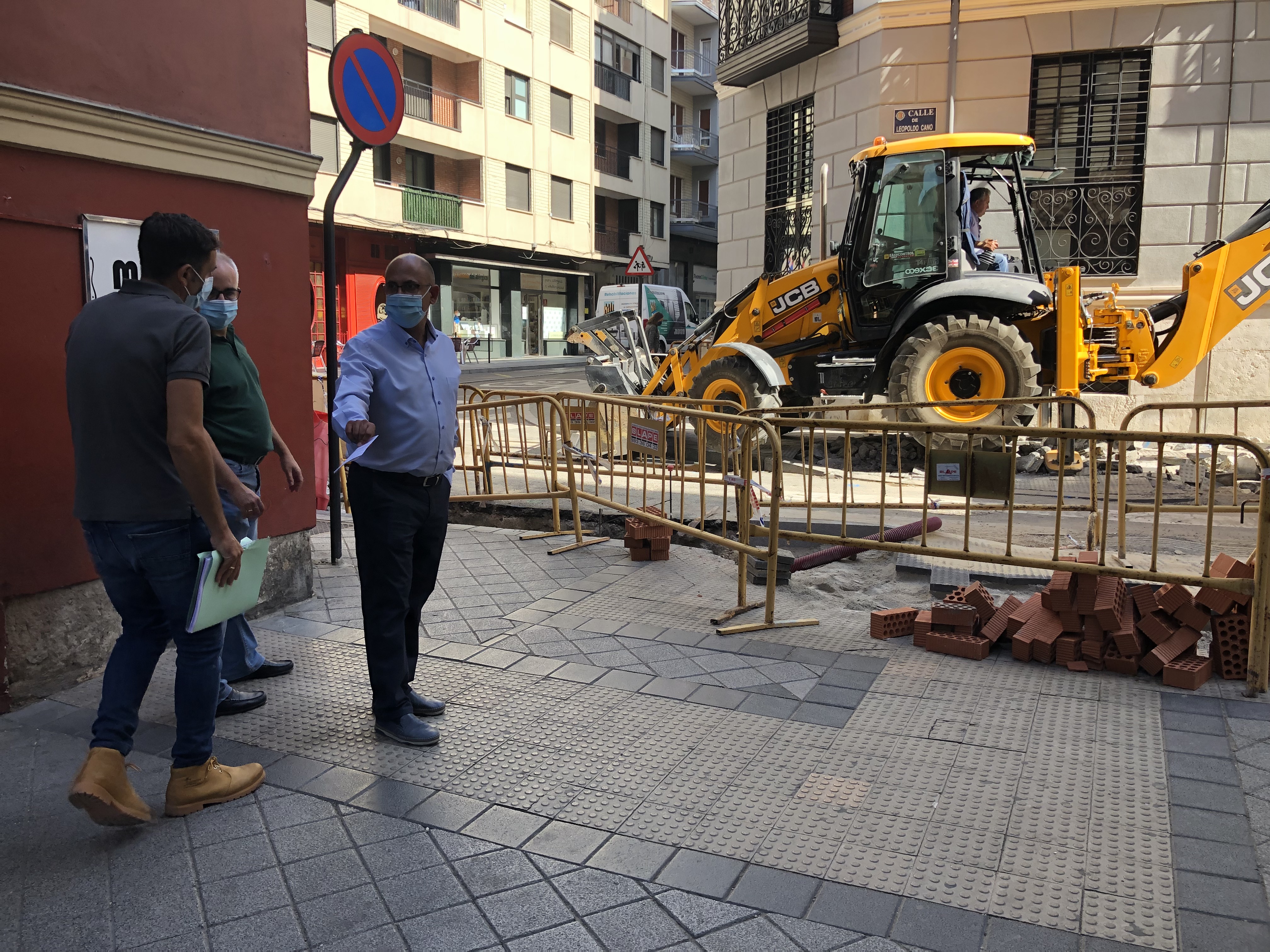 El concejal de Movilidad y Espacio Urbano, Luis Vélez, ha visitado junto a técnicos municipales las obras que se están acometiendo en la calle Angustias y en Leopoldo Cano en el centro de la ciudad.