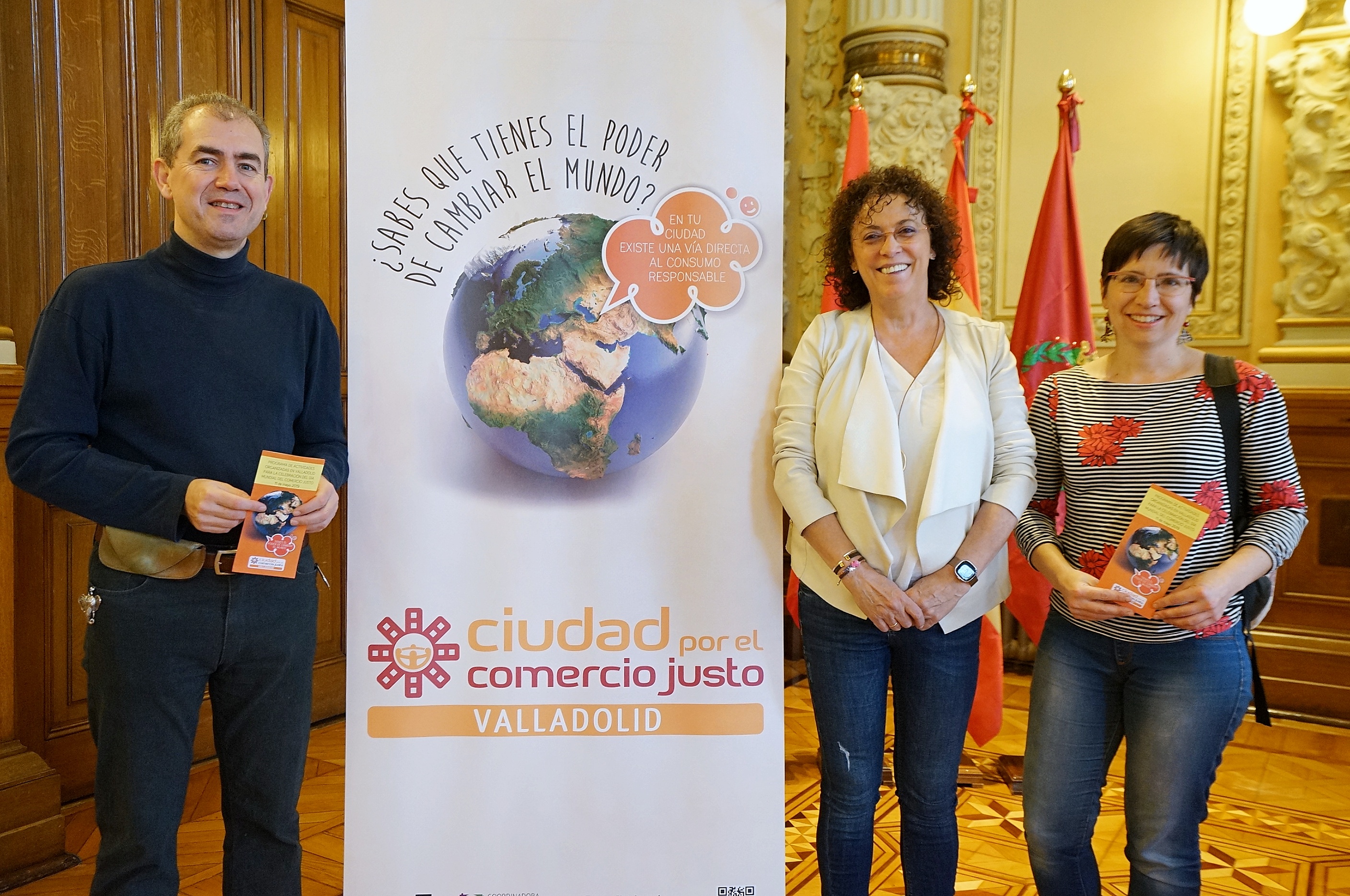 La concejala de Servicios Sociales, Rafaela Romero, ha presentado las actividades que se desarrollarán en el marco de la celebración del Día Mundial del Comercio Justo, en un acto celebrado en el Ayuntamiento de Valladolid. Ha estado acompañada durante el mismo por la técnica de la Oficina de Cooperación Internacional al Desarrollo de la UVa, Carmen Duce, y por parte de la Plataforma Vallisoletana de Comercio Justo de la Coordinadora de ONGD de Castilla y León, por Jesús Gómez Pérez.
