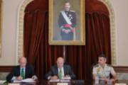 El alcalde de Valladolid, Jesús Julio Carnero, y el director de la Fundación Iberdrola España, Ramón Castresana, han suscrito esta mañana, en presencia del coronel director de la Academia de Caballería, Francisco Javier López Villar, y el delegado de Iberdrola en Castilla y León, Miguel Calvo, un convenio de colaboración para dotar de una nueva iluminación ornamental exterior la Academia de Caballería, uno de los edificios más representativos y majestuosos de la capital vallisoletana.