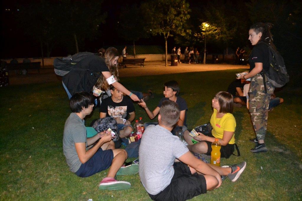 Como en ocasiones anteriores, el trabajo no se desarrolló únicamente en el stand, simultáneamente hubo un despliegue de mediadoras juveniles formadas en drogodependencias que, con mochila a cuestas, llenas de material informativo, recorrieron toda la zona de las Moreras.