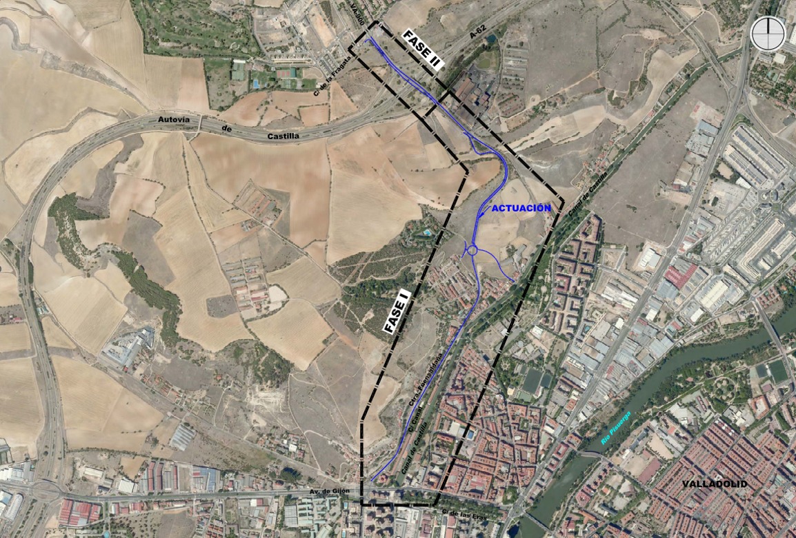 En la actualidad, la carretera de Fuensaldaña carece de aceras en gran parte de su trazado y no dispone de un carril bici, lo que dificulta y pone en riesgo los desplazamientos de peatones y ciclistas. La intervención contempla la creación de un nuevo acceso a la red ciclista de la ciudad a través de la calle Parva de la Ría, mediante la pasarela existente, conectando con el itinerario paralelo al Canal de Castilla.