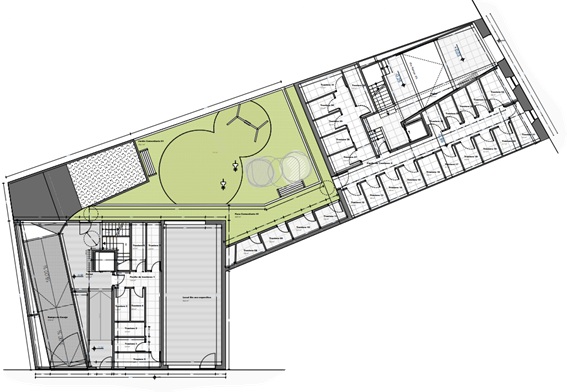 La Fase 4 objeto del presente proyecto tiene forma rectangular y se desarrolla sobre una superficie total de 1.575 m², con dos ámbitos diferenciados: