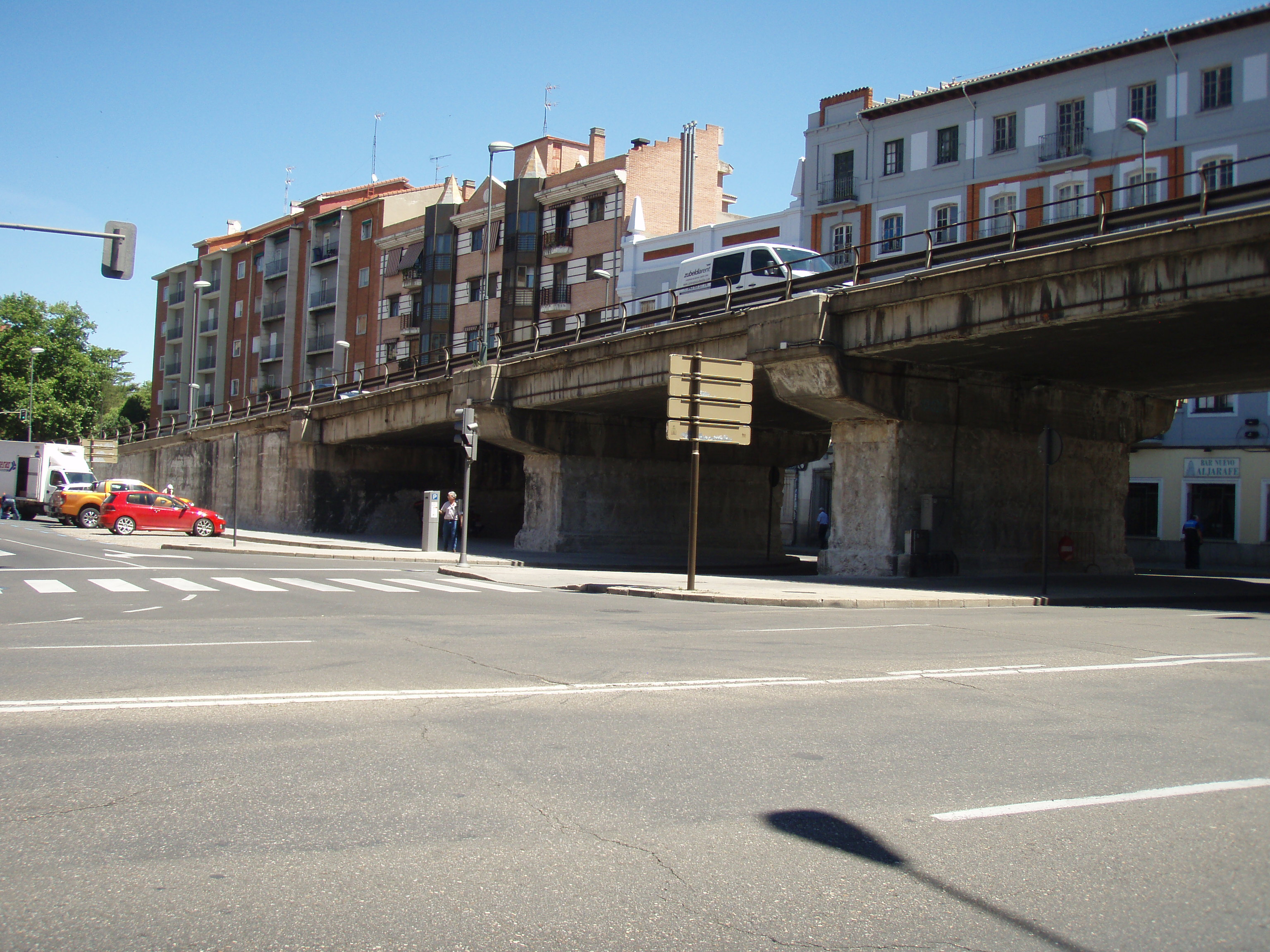 Hoy, 8 de junio de 2017, se ha dado por concluida la demolición y retirada de la totalidad de los aplacados de piedra caliza que revestían los estribos y pilas del viaducto sobre las vías del ferrocarril en el paseo del Arco de Ladrillo.