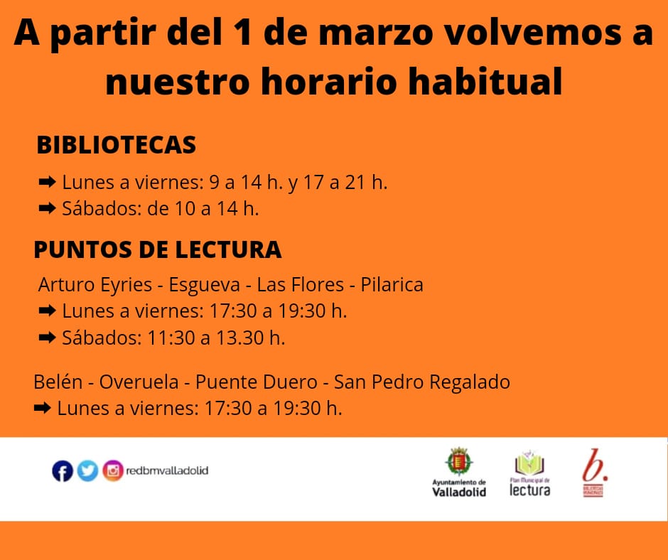 Horario Bibliotecas Municipales desde el lunes 1 de marzo