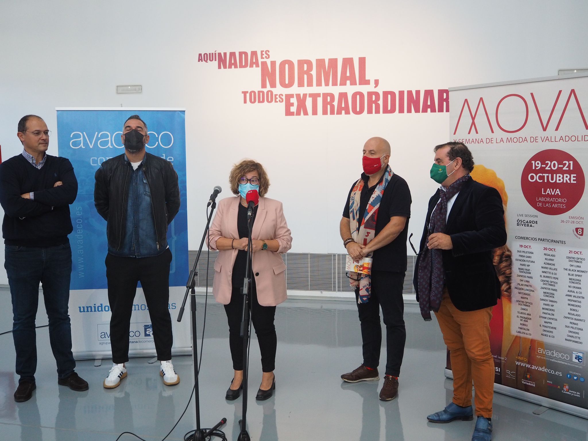 La concejala de Innovación, Desarrollo Económico, Empleo y Comercio, Charo Chávez, el presidente de Avadeco, Alejandro García Pellitero, el director de Tamayo Agencia, Ángel Tamayo, como director del evento, han presentado hoy MOVA en el Lava junto al dj Óscar de Rivera, que ofrecerá tres sesiones en directo para cada uno de los desfiles, y el director de Imagen y Comunicación de Caja Rural de Zamora, Narciso Prieto Martín.