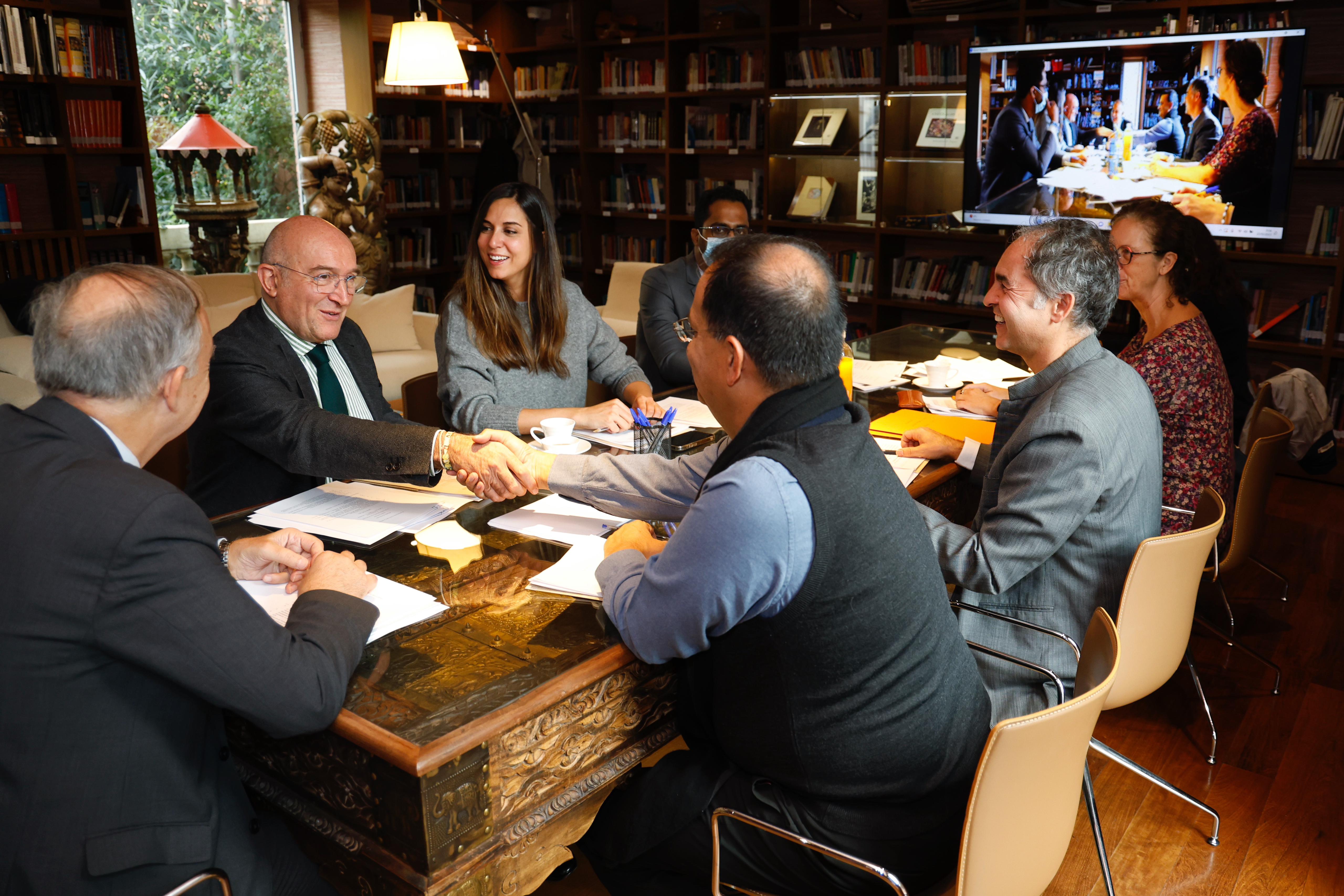 El alcalde de Valladolid, Jesús Julio Carnero, se ha incorporado hoy al Patronato de la Fundación Casa de la India, que se ha reunido tras ser convocado por su presidente y Rector de la Universidad de Valladolid, Antonio Largo Cabrerizo. A la reunión, que ha tenido lugar en la Casa de la India, ha asistido también la concejala de Turismo, Eventos y Marca Ciudad, Blanca Jiménez Cuadrillero, en condición de invitada, así como por parte del Gobierno de la India el embajador Dinesh K. Patnaik.