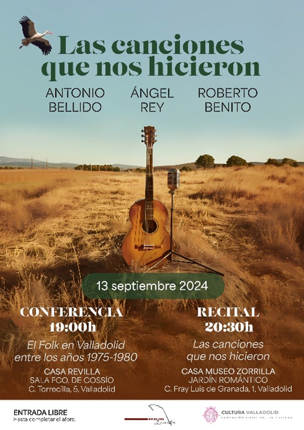 A continuación, tendrá lugar un concierto con temas de la música popular y de autores e intérpretes referentes para generaciones, que se han apoyado en ellos para construir su propia identidad. El patio de la Casa de Zorrilla abrirá sus puertas al público a las 20:25h y, una vez que hayan accedido los asistentes a la charla, se permitirá la entrada a las personas que deseen presenciar el concierto, hasta completar el aforo de 125 personas.