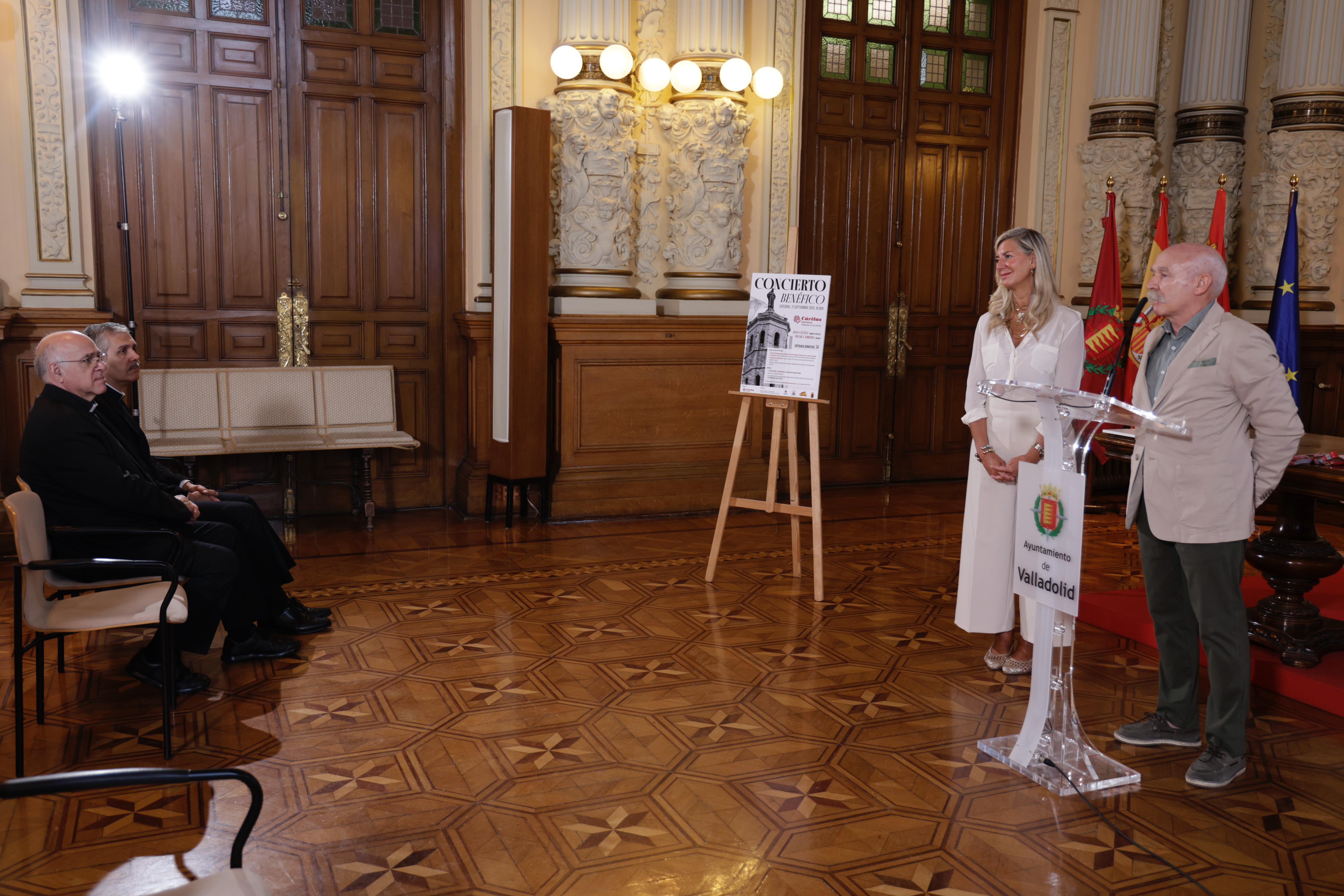 La concejala de Educación y Cultura, Irene Carvajal, y el director de Cáritas Castrense Valladolid, Francisco José Campo Largo, han presentado esta mañana en el Ayuntamiento de Valladolid el concierto benéfico a favor de Cáritas Castrense Valladolid, que tendrá lugar el miércoles 17 de septiembre, a las 19:30h, en la Catedral de Valladolid.