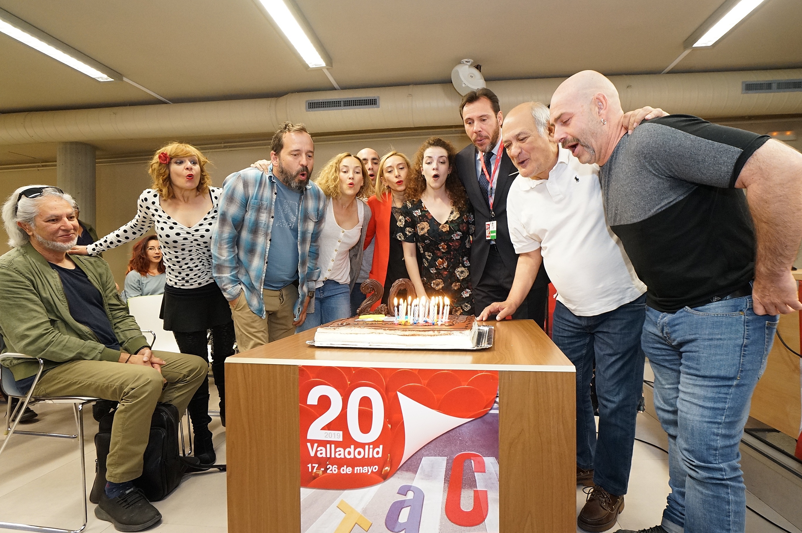 En el acto han estado acompañados por representantes de las compañías vallisoletanas que participarán en el certamen. Todos juntos han soplado las velas de una tarta con la que se han celebrado de manera simbólica los 20 años cumple el TAC.