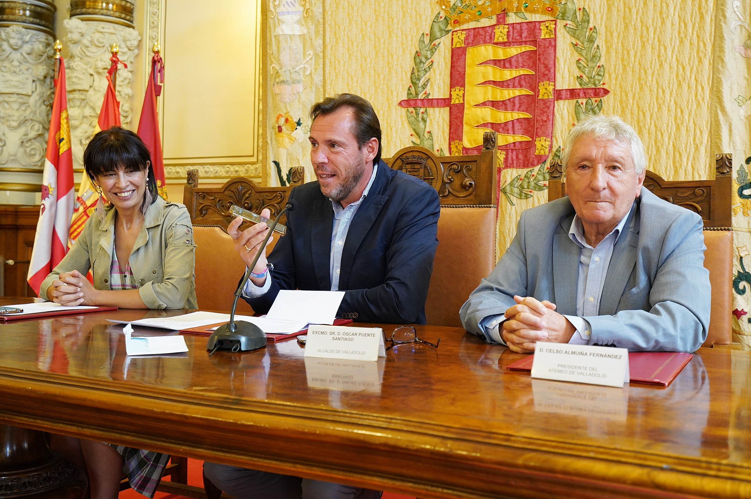 El alcalde, Óscar Puente, acompañado por la concejala de Cultura y Turismo, Ana Redondo, y el presidente del Ateneo, Celso Almuiña, ha presidido el acto de proclamación del ganador del Premio de Novela "Ateneo-Ciudad de Valladolid" que, en 2019, está viviendo su edición número 66 y es el galardón literario más veterano y prestigioso de Valladolid.