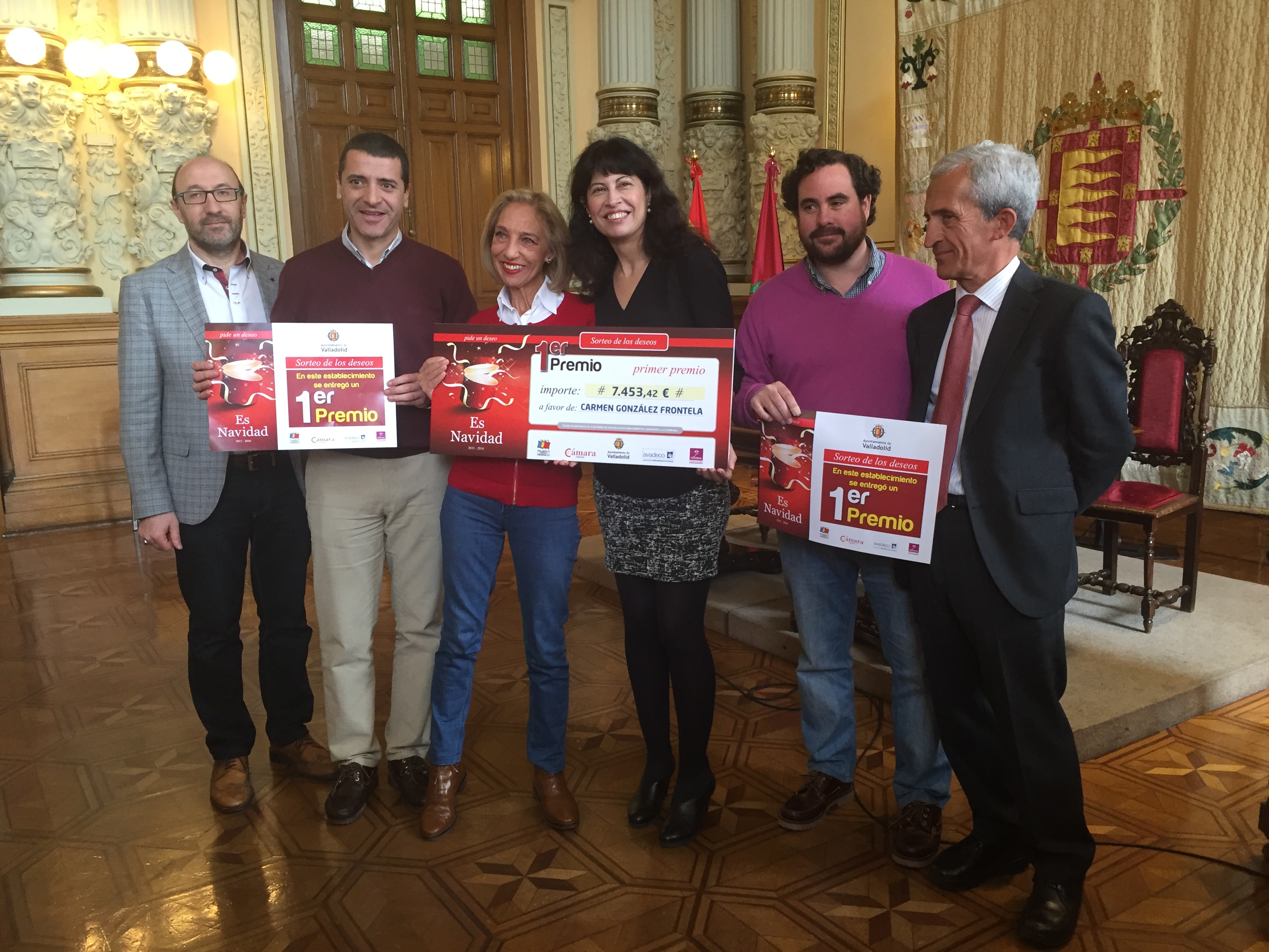 En el Salón de Recepciones de la Casa Consistorial, la concejala de Cultura y Turismo, Ana María Redondo García, ha hecho entrega de los cheques a los ganadores en el tradicional ‘Sorteo de los Deseos’ celebrado ayer. Ha estado acompañada por representantes de las entidades organizadoras: la Cámara Oficial de Comercio e Industria y las asociaciones de comerciantes Avadeco y Fecosva.