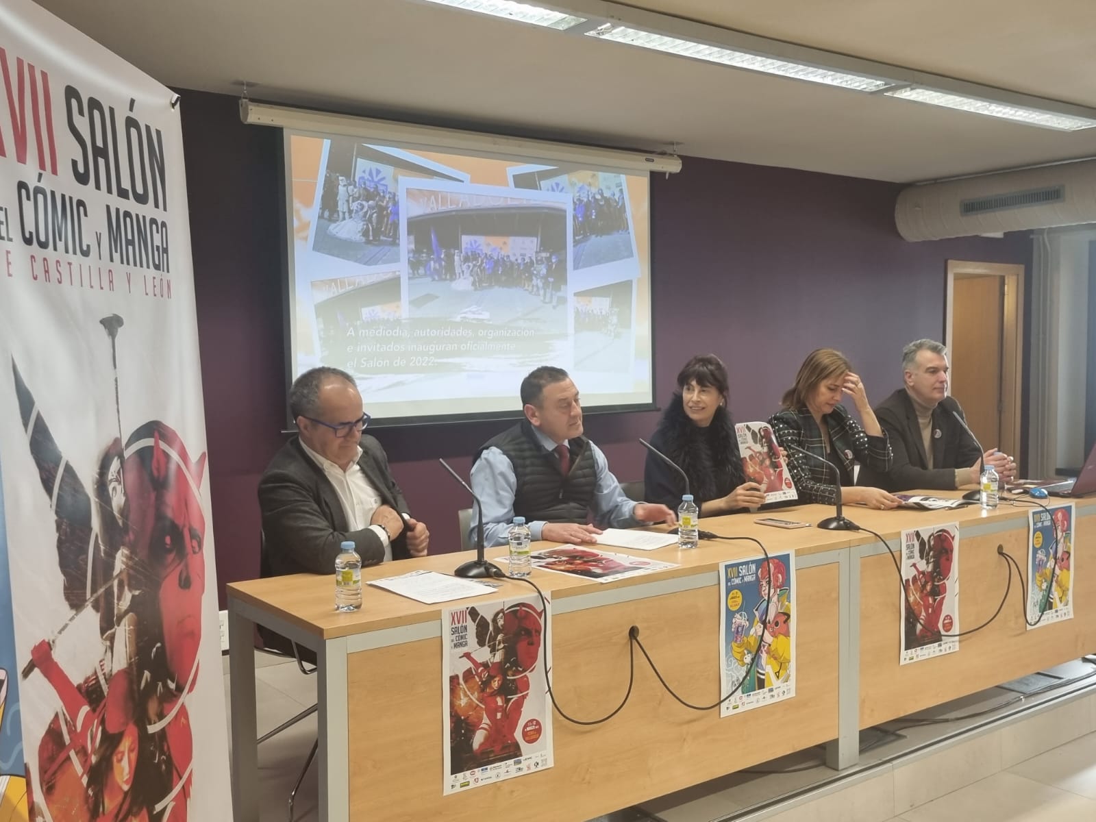 La concejala de Cultura y Turismo, Ana Redondo; el director de la Feria de Valladolid, Alberto Alonso; la diputada de Consumo y Promoción Alimentaria, Inmaculada Toledano; el profesor Matías López de la Universidad Europea Miguel de Cervantes; el director de la 8 de Radio Televisión Castilla y León, Florencio Carrera; y el presidente de ASOFED, Carlos Ramírez; han presentado el XVII Salón del Cómic y el Manga de Castilla y León que se celebrará en la Feria de Valladolid los días 11 y 12 de marzo.
