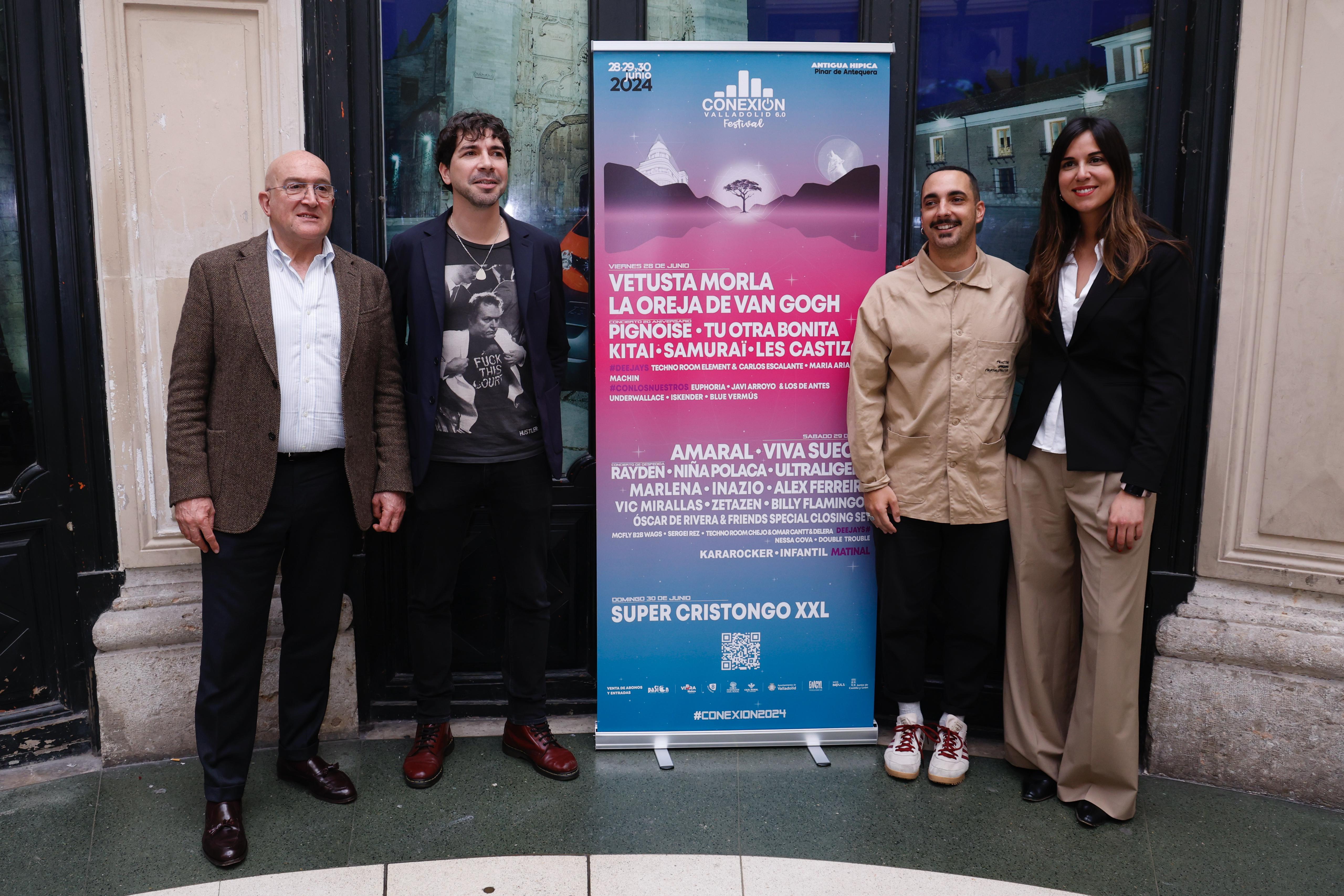 El alcalde de Valladolid, Jesús Julio Carnero; la concejala de Turismo, Eventos y Marca Ciudad, Blanca Jiménez, y el director de ‘Conexión Valladolid’, Álvaro Vidal, han presentado la sexta edición del Festival, que tendrá lugar los días 28, 29 y 30 de junio en la antigua Hípica Militar.