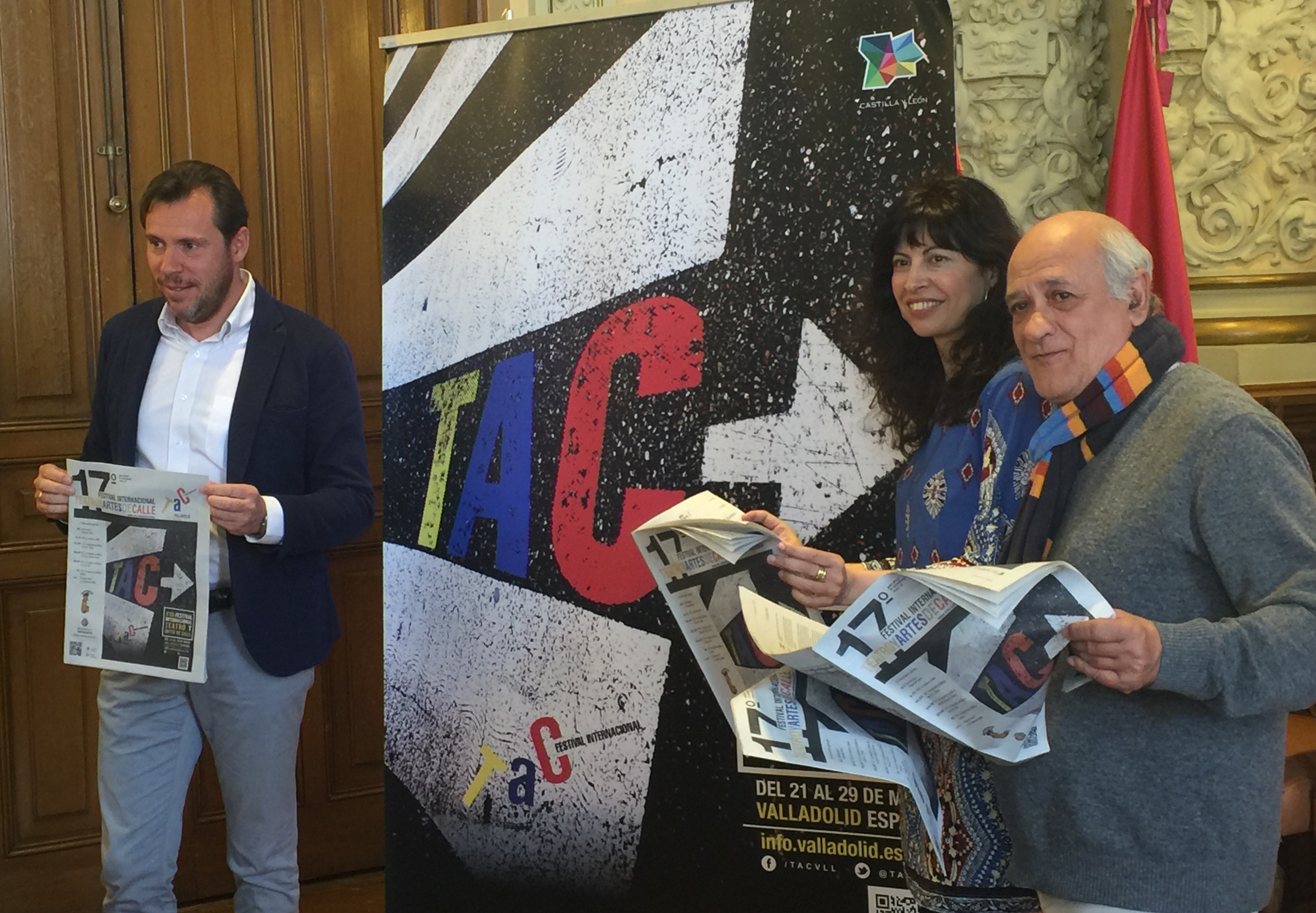 Un total de 63 compañías se darán cita en Valladolid del 21 al 29 de mayo de este año. Y cuándo y dónde actúa cada una de ellas está recogido en la edición de 2016 de El Comediante, publicación editada por Nuevo Cuño que presentan hoy al público Óscar Puente, alcalde de Valladolid; Ana María Redondo, concejala de Cultura y Turismo, y Javier Martínez, director artístico del TAC.