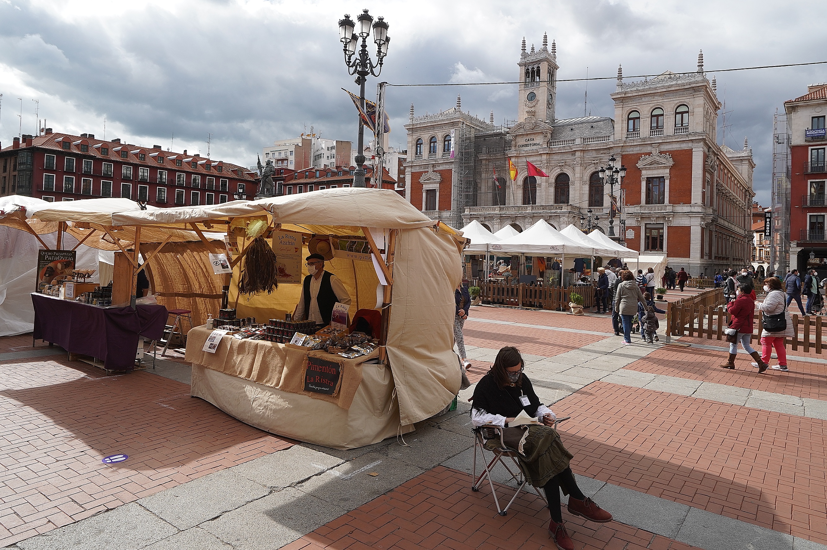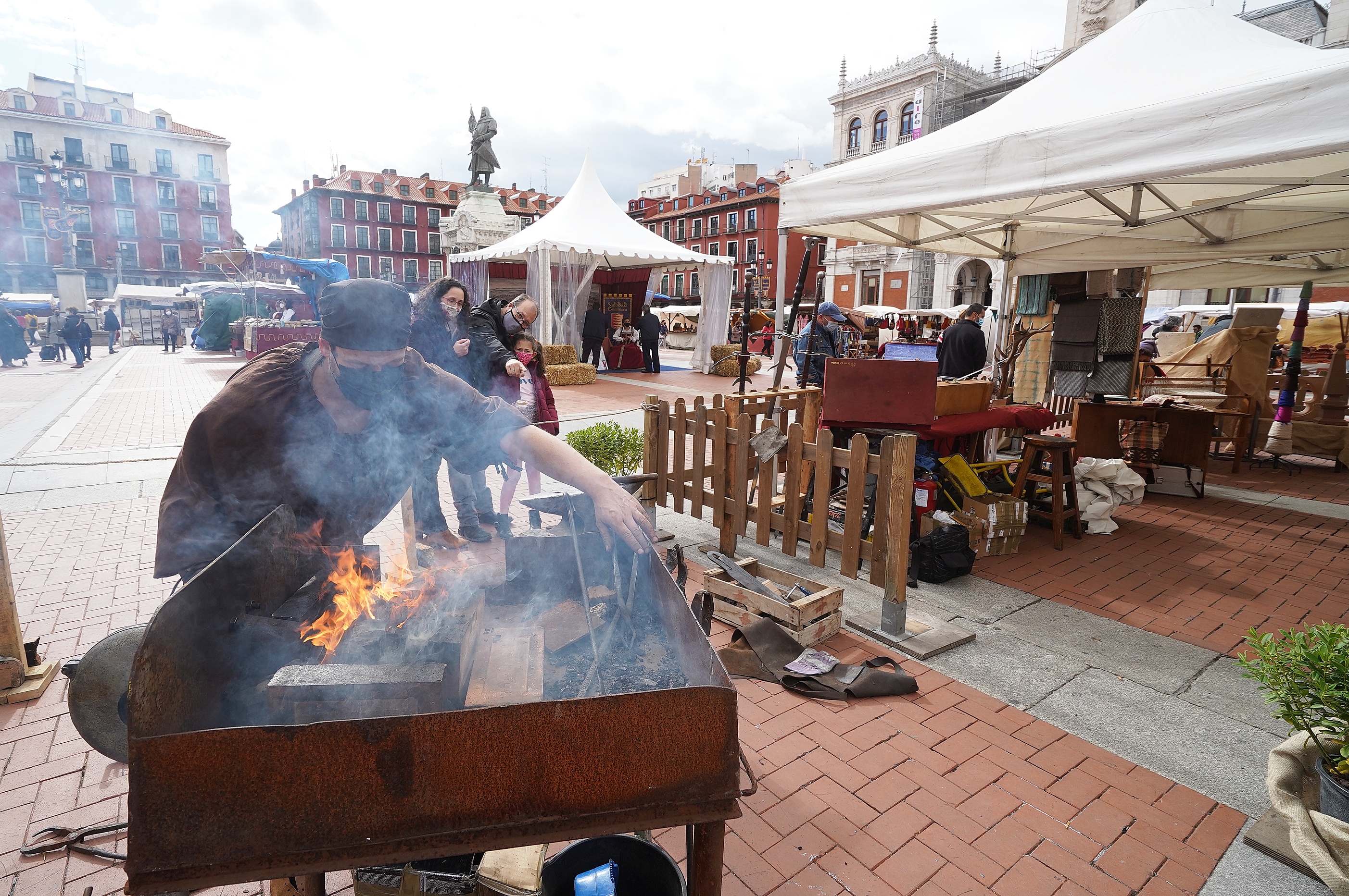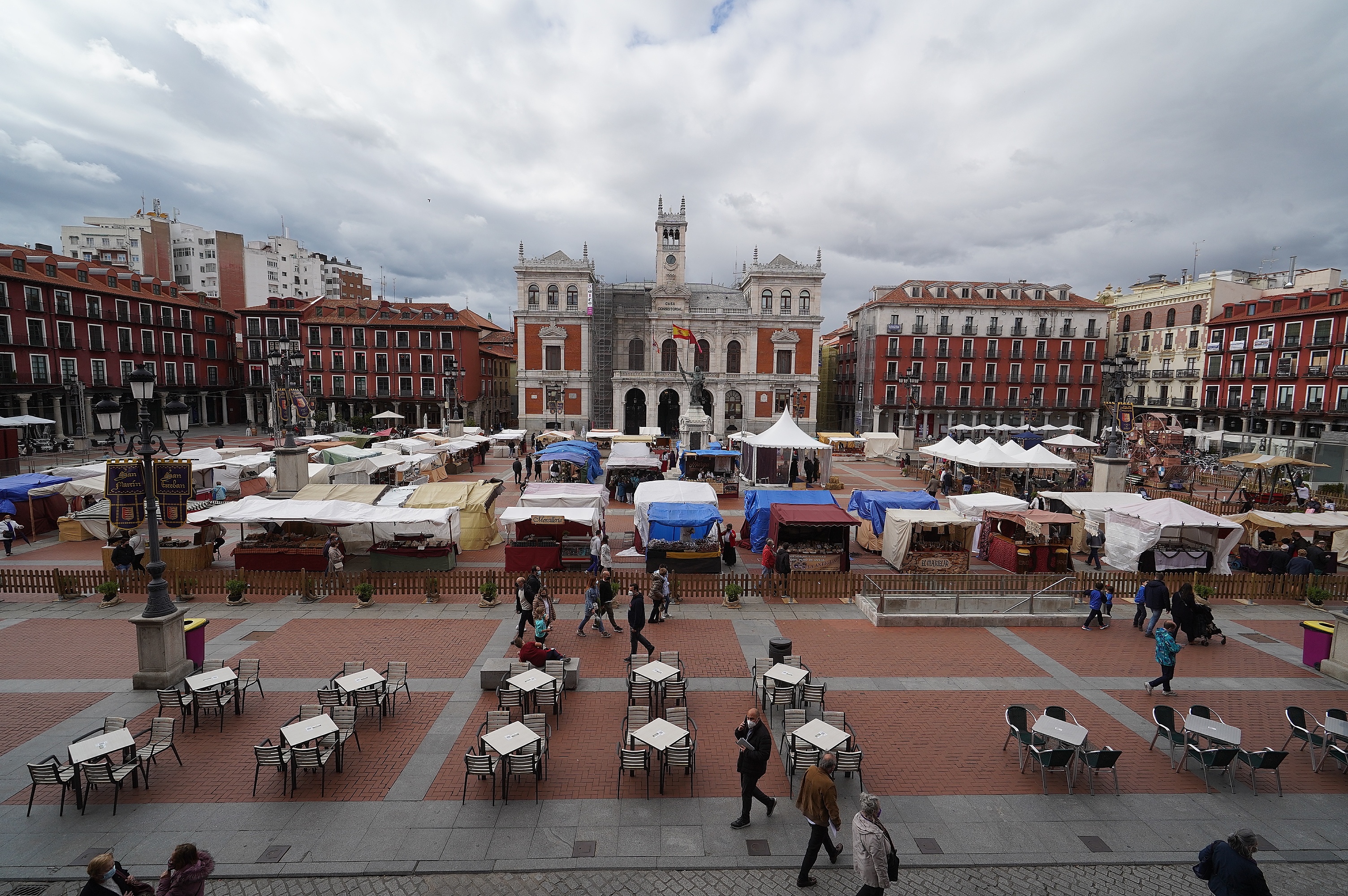 Una extensa muestra de artículos creados por artesanos y alimentos elaborados de forma tradicional recreará en la Plaza Mayor de Valladolid el ambiente de las ferias de antaño desde la tarde de hoy, 12 de mayo, hasta el domingo 16. El Mercado Castellano se acomoda este año, con 78 puestos, en el lugar más céntrico de la ciudad, al trasladarse desde su emplazamiento habitual en la zona de la iglesia de San Pablo y después de la mudanza provisional en 2020 a la plaza de Portugalete en vísperas de las fiestas de la Virgen de San Lorenzo. Ahora recupera sus fechas habituales, dentro del programa de actividades de San Pedro Regalado.