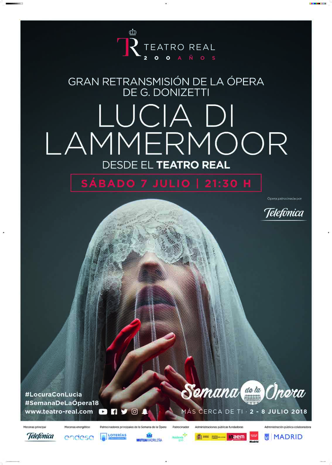 La producción es un obra aclamada del director de escena estadounidense David Alden, con dirección musical de Daniel Oren, cuenta con un magnífico reparto encabezado por la soprano estadounidense de ascendencia cubana Lisette Oropesa (Lucia), el tenor mexicano Javier Camarena (Edgardo), elbarítono Artur Rucinski (Enrico Ashton), el bajo Roberto Tagliavini (Raimondo Bidebent), el tenor Yijie Shi (Lord Arturo Bucklaw), la mezzosoprano Marina Pinchuk (Alisa) y el barítono Alejandro del Cerro (Normanno). Junto a ellos, el Coro y Orquesta Titulares del Teatro Real.