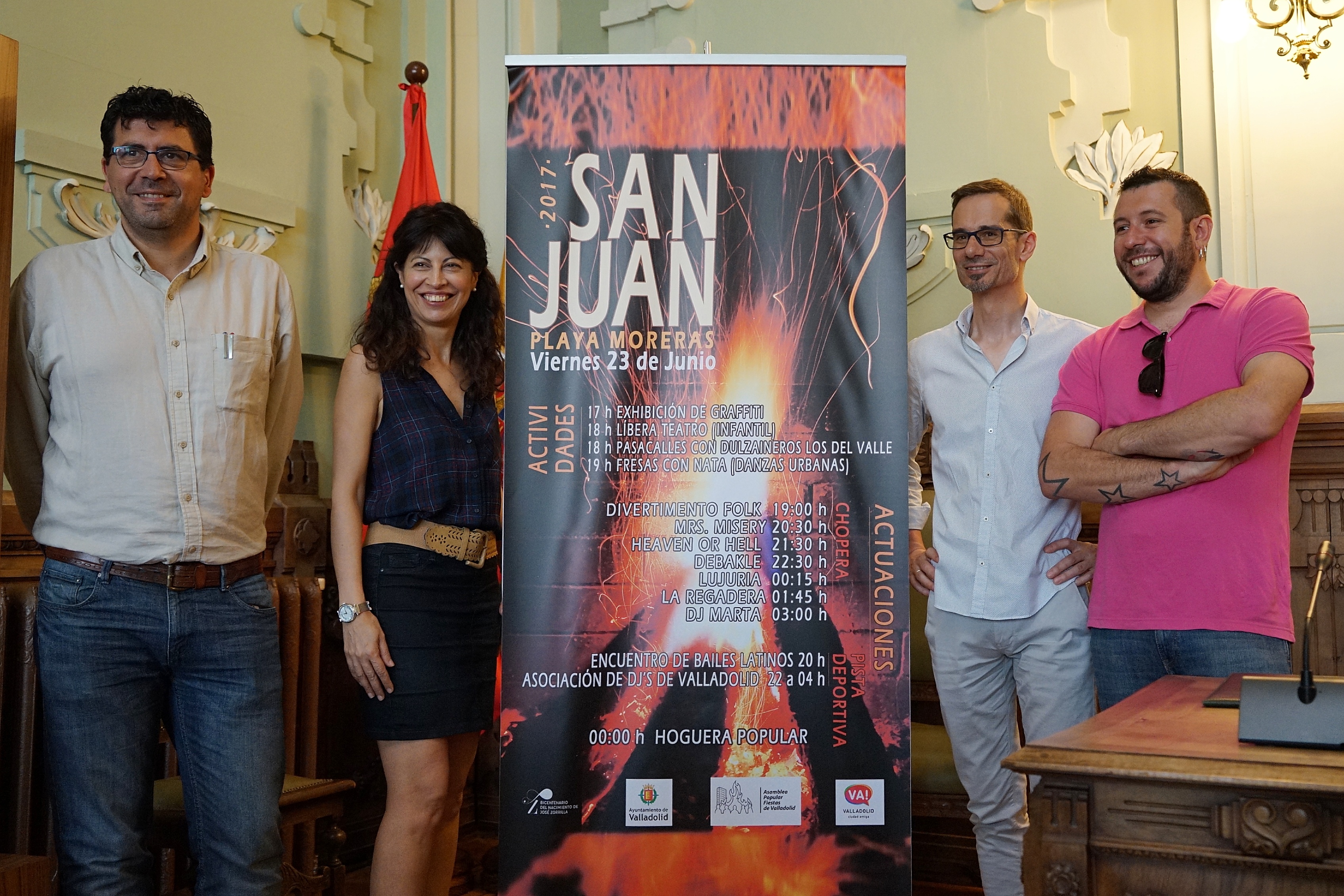 La concejala de Cultura y Turismo, Ana María Redondo, y el concejal de Participación Ciudadana, Juventud y Deportes, Alberto Bustos, han presentado esta mañana, en el Salón de Plenos del Ayuntamiento de Valladolid, el programa organizado por el Ayuntamiento de Valladolid, a través de su Fundación Municipal de Cultura, para celebrar la Noche de San Juan. Unas actividades que comenzarán por la tarde y se alargarán hasta la madrugada con la música de La Regadera, Lujuria, la Asociación de DJs de la ciudad y grupos locales.
