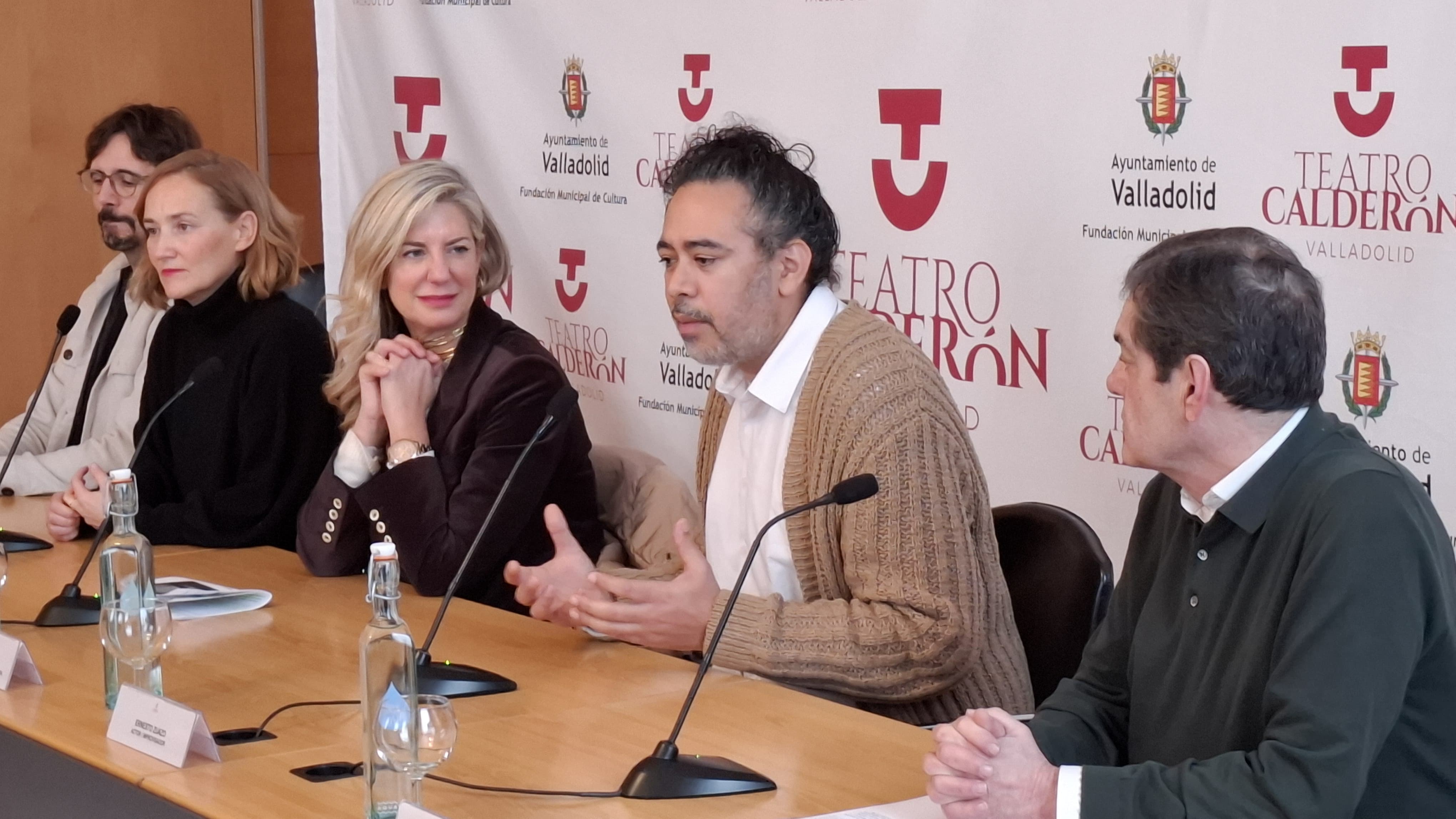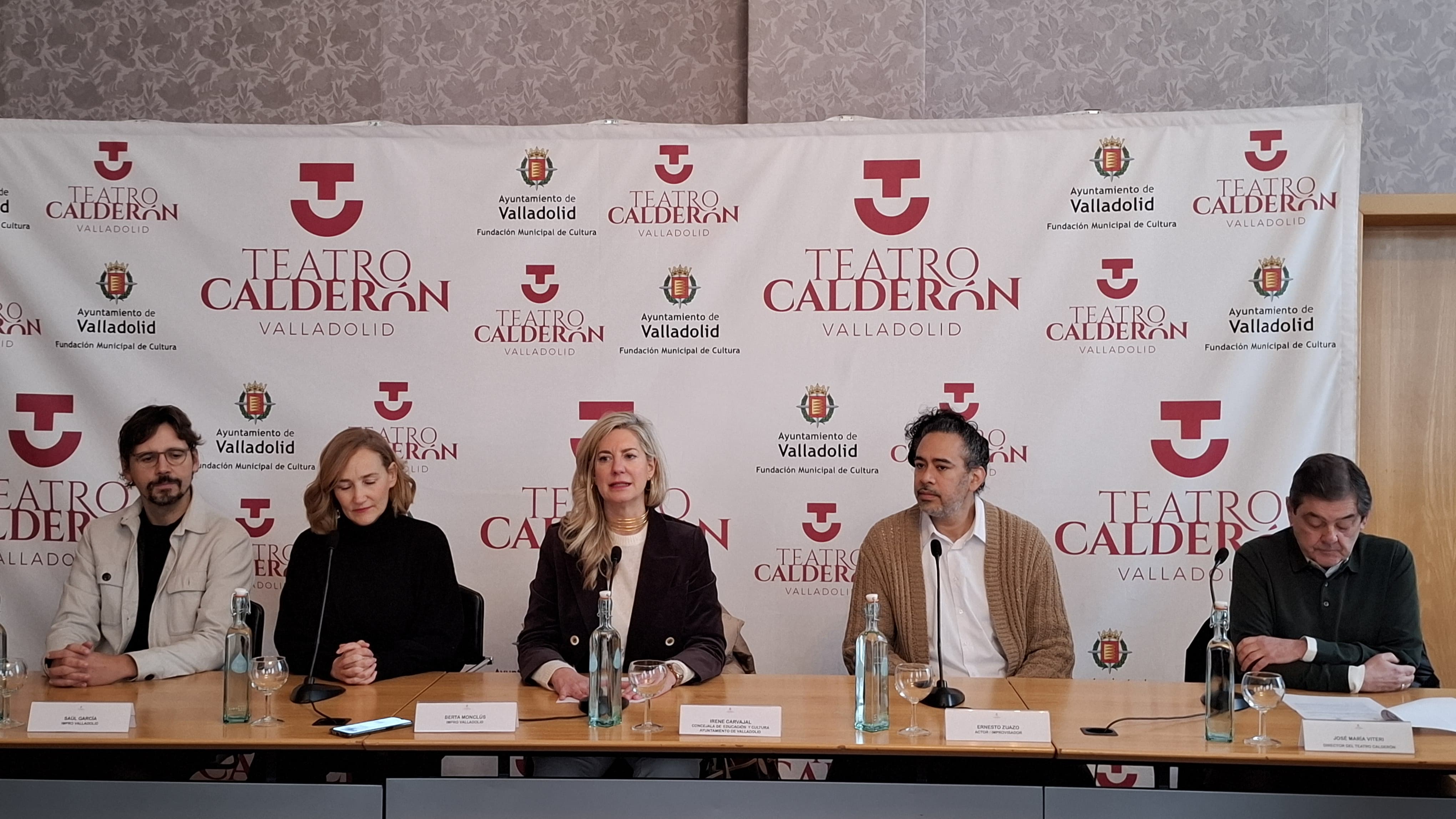 La concejala de Educación y Cultura, Irene Carvajal; el director del Teatro Calderón, José María Viteri; la actriz y directora de Impro Valladolid Berta Monclús; el actor y docente Ernesto Zuazo y Saúl García, miembro de Impro Valladolid, han presentado esta mañana la III Liga Escolar de Match de Improvisación y el III Match Internacional, que se celebrarán esta temporada en Valladolid.